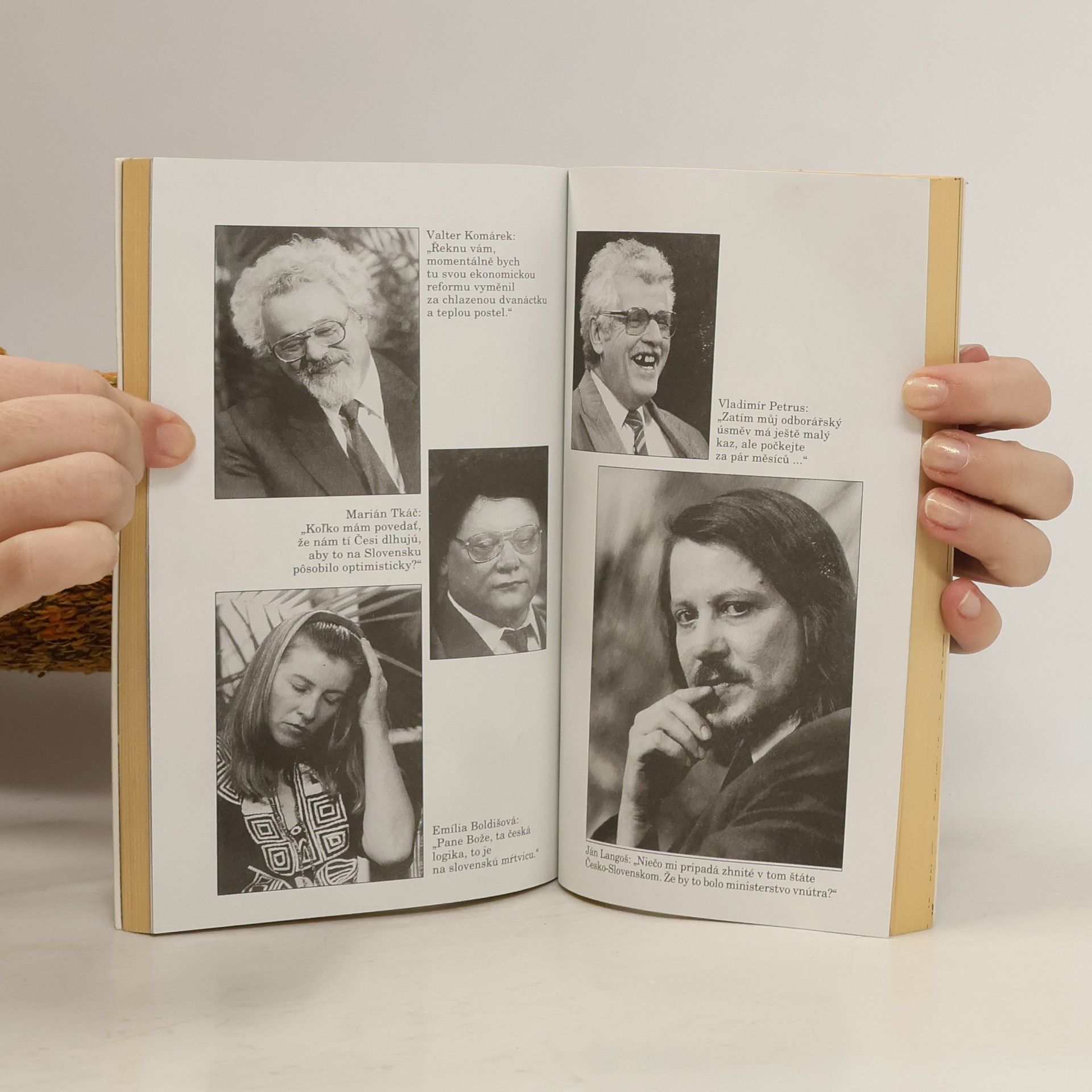 Politika je vážná věc, ale ne natolik, aby u ní člověk musel ztrácet smysl pro humor, nadhled a odstup. 200 stran + 16 stran černobílých fotografií. Foto ©ČTK, Daniela Sýkorová, 1993. 1. vydání.