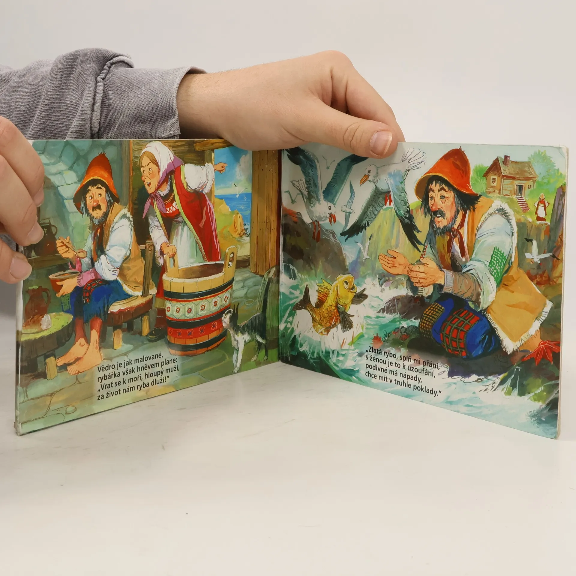 Veršovaná pohádka o zlaté rybce a nenasytné rybářce.