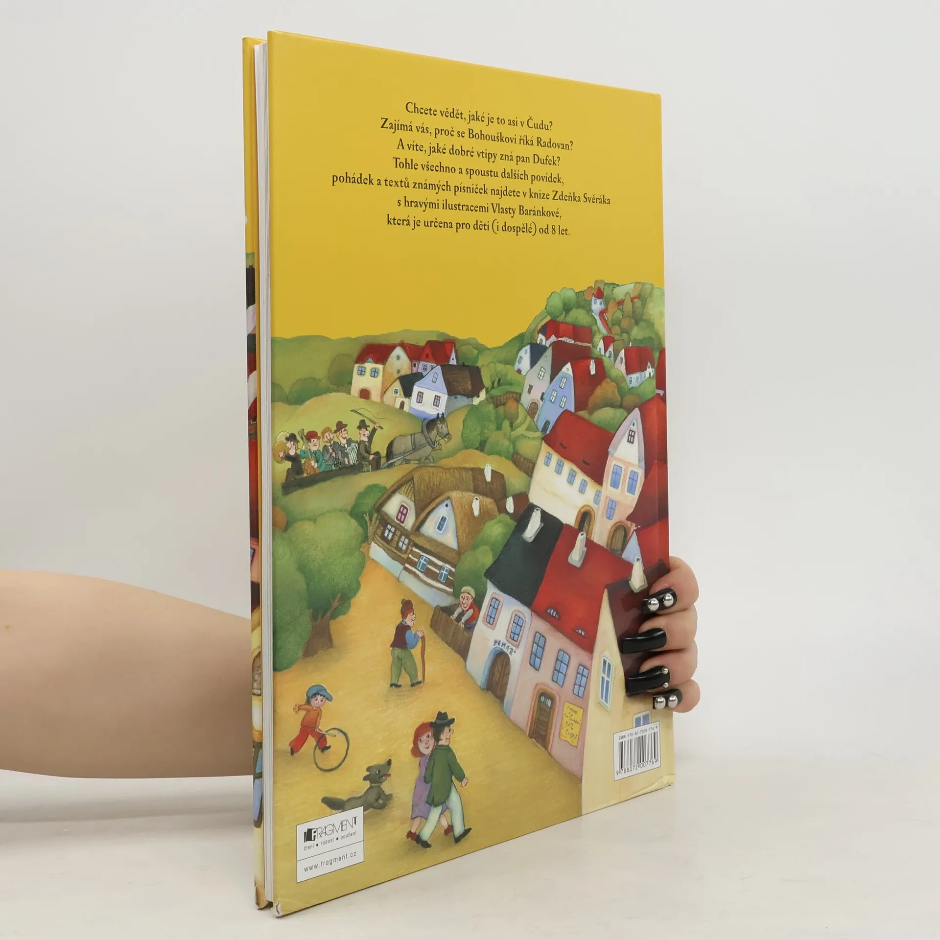 Chcete vědět, jaké je to asi v Čudu? Tušíte, proč se Bohouškovi říká Radovan? A jaké dobré vtipy zná pan Dufek? Právě vám je určena kniha plná povídek, pohádek a textů známých písniček Zdeňka Svěráka s hravými ilustracemi Vlasty Baránkové, která zaručeně potěší všechny děti do 100 let.