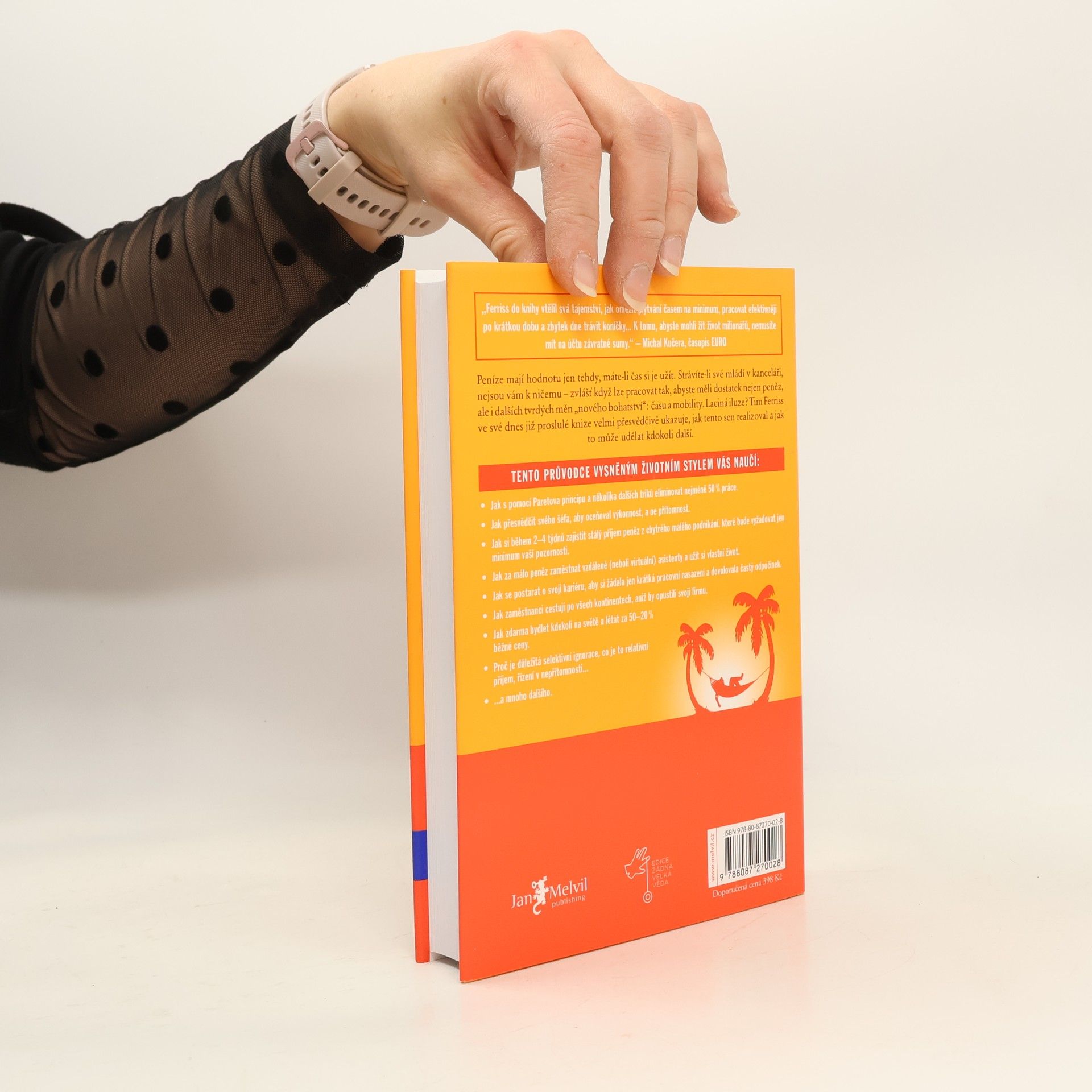 Peníze mají hodnotu jen tehdy, máte-li čas si je užít. Strávíte-li své mládí v kanceláři, nejsou vám k ničemu zvlášť když lze pracovat tak, abyste měli dostatek nejen peněz, ale i dalších tvrdých měn nového bohatství: času a mobility. Laciná iluze? Tim Ferriss ve své dnes již proslulé knize velmi přesvědčivě ukazuje, jak tento sen realizoval a jak to může udělat kdokoli další. Kniha je světovým bestsellerem a vyšla v 35 zemích.