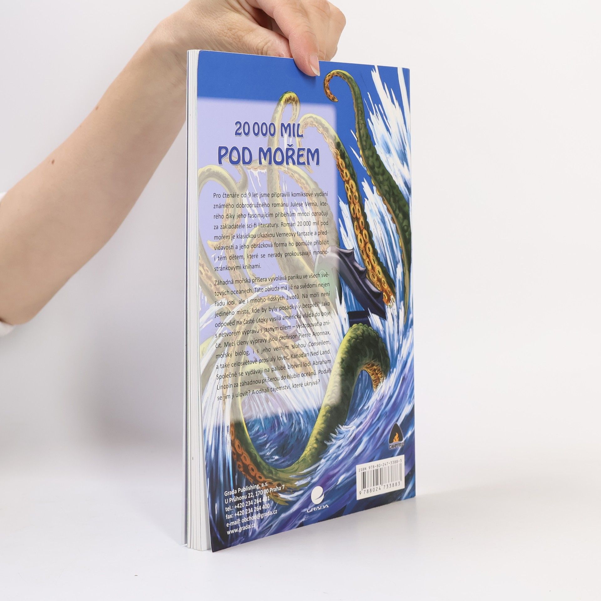 Pro čtenáře od 9 let jsme připravili komiksové vydání známého dobrodružného románu Julese Verna, kterého díky jeho fascinujícím příběhům mnozí označují za zakladatele sci-fi literatury. Román 20 000 mil pod mořem je klasickou ukázkou Verneovy fantazie a předvídavosti a jeho obrázková forma ho pomůže přiblížit i těm dětem, které se nerady prokousávají mnohostránkovými knihami. Záhadná mořská příšera vyvolává paniku ve všech světových oceánech. Tato obluda má již na svědomí nejen řadu lodí, ale i mnoho lidských životů. Na moři není jediného místa, kde by byly posádky v bezpečí! Jako odpověď na časté útoky vysílá americká vláda do boje s netvorem výpravu s jasným cílem - vystopovat a zničit. Mezi členy výpravy jsou profesor Pierre Aronnax, mořský biolog, i s jeho věrným sluhou Conseilem, a také celosvětově pro-slulý lovec, Kanaďan Ned Land. Společně se vydávají na palubě bitevní lodi Abraham Lincoln za záhadnou příše-rou do hlubin oceánů. Podaří se jim ji ulovit? A odhalí tajemství, které ukrývá?