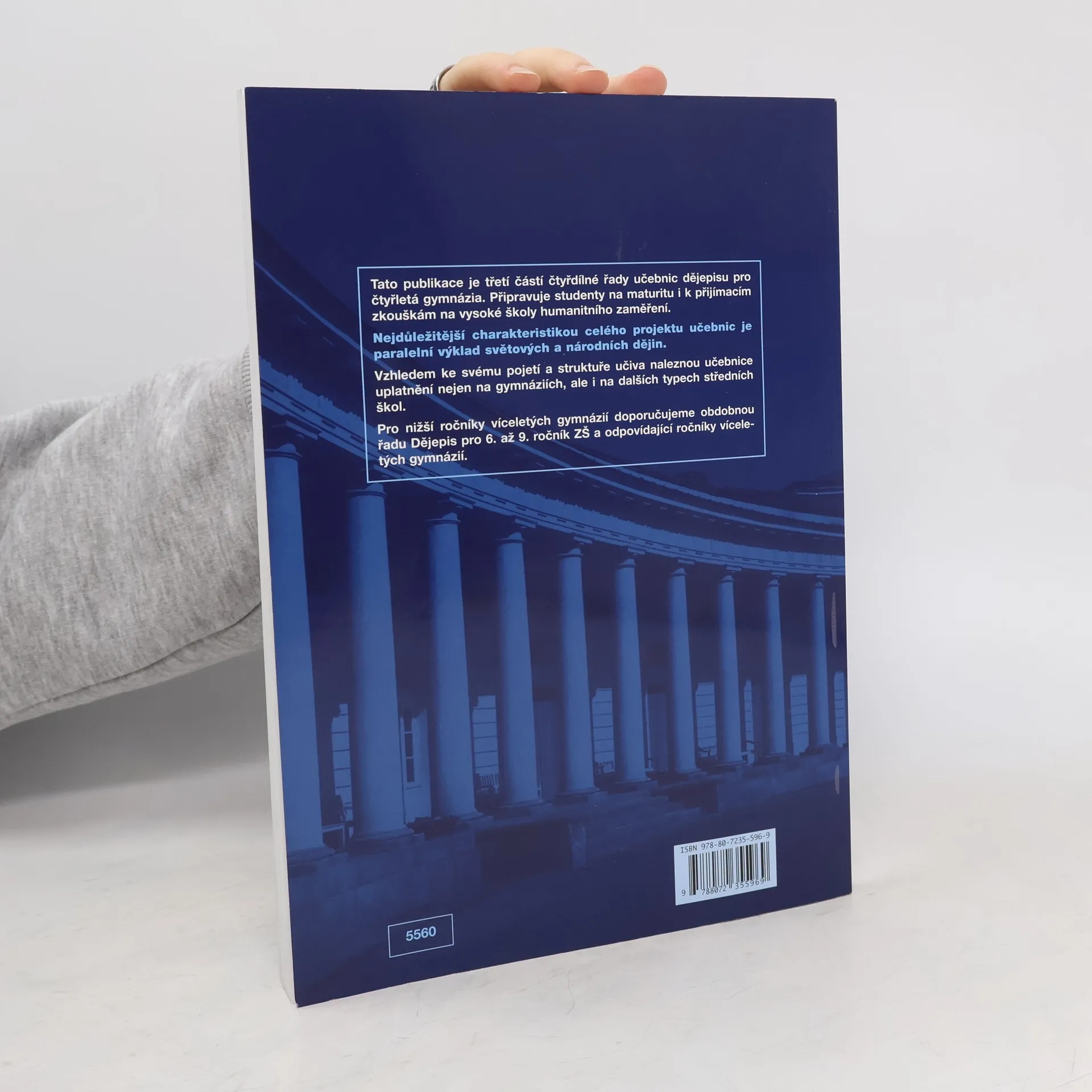 Třetí z řady učebnic dějepisu pro gymnázia a střední školy – uplatní se především na gymnáziích, ale i na dalších typech škol, neboť je v učebnicích graficky odlišen základní výklad od rozšiřujícího textu. Vzhledem k rozvržení učiva s důrazem na nové dějiny umožňuje i dobrou přípravu na VŠ. Kladem řady je její nepřetíženost fakty a především paralelně vedený výklad světových i českých dějin od nejstarších dob po současnost. Učebnice obsahují bohatý obrazový materiál, početné dějepisné mapy a náležitý didaktický aparát. Přední východ ●., Egypt ●., starověké Řecko ●., starověký Řím ●., Indie ●., Čína