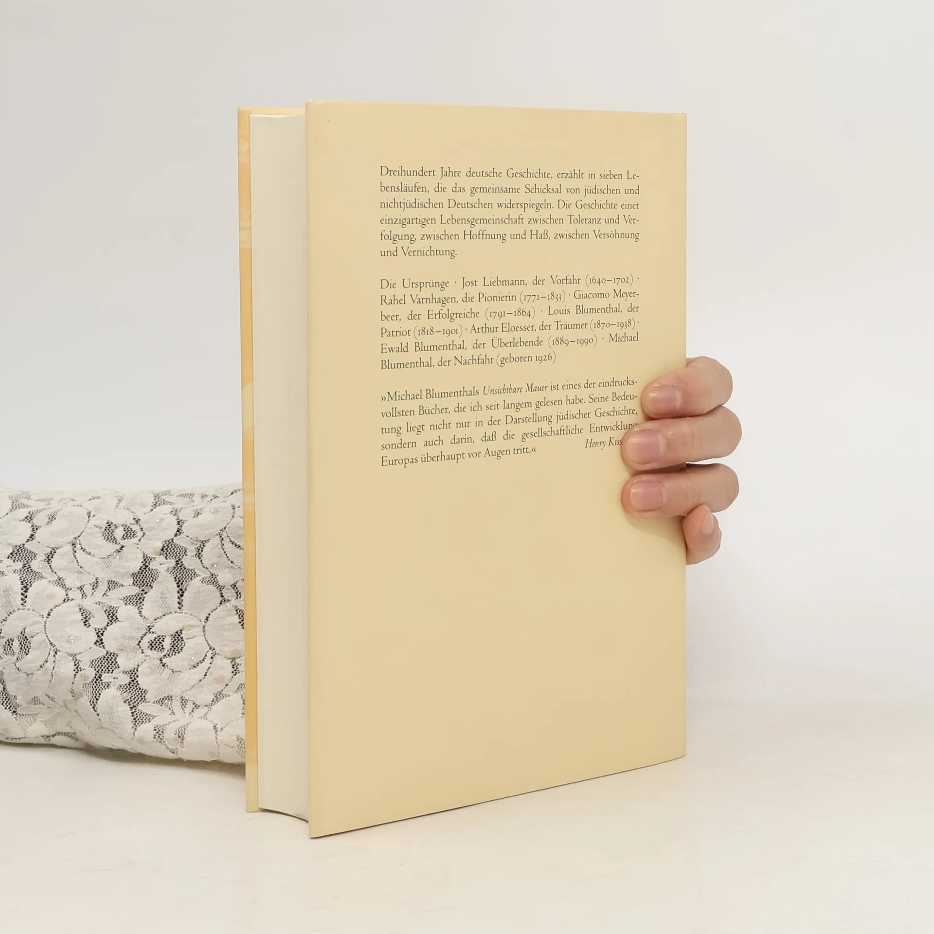 300 Jahre Geschichte des deutschen Judentums in Einzelschicksalen: Michael Blumenthal, Direktor des Jüdischen Museums in Berlin, beschreibt anhand von sieben Schicksalswegen seiner Ahnen, wie sich die Juden auf deutschem Boden säkularisierten. Von Jost Liebmann, dem Hofjuwelier des Großen Kurfürsten, über Rahel Varnhagen von Ense und Giacomo Meyerbeer bis zu sich selbst zeigt er, wie sie trotz des dauernden Kampfes gegen Ausgrenzung und Demütigung durch Anpassung und gesellschaftlichen Erfolg Zugang zu ihrer Wahlheimat fanden.