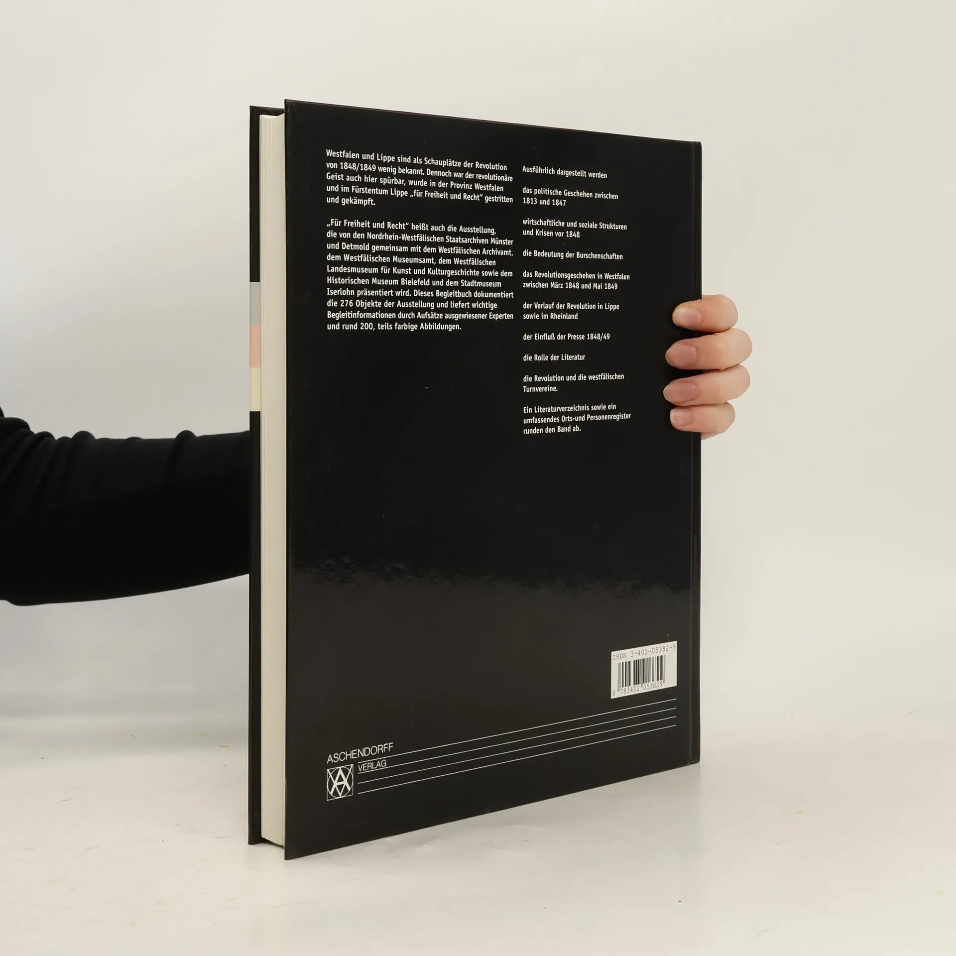Zur Darstellung kommen: die Bedeutung der Revolution für die regionale politische Entwicklung- das politische Geschehen zwischen 1813 und 1847 - wirtschaftliche und soziale Strukturen und Krisen vor 1848 - die Bedeutung der Burschenschaften - das Revolutionsgeschehen in Westfalen zwischen März 1848 und Mai 1849 - der Verlauf der Revolution in Lippe sowie im Rheinland - Lebensläufe westfälischer Demokraten - der Einfluß der Presse 1848/49 - die Rolle der Literatur - die Turnvereine - die relevanten Bildüberlieferungen der Revolution.