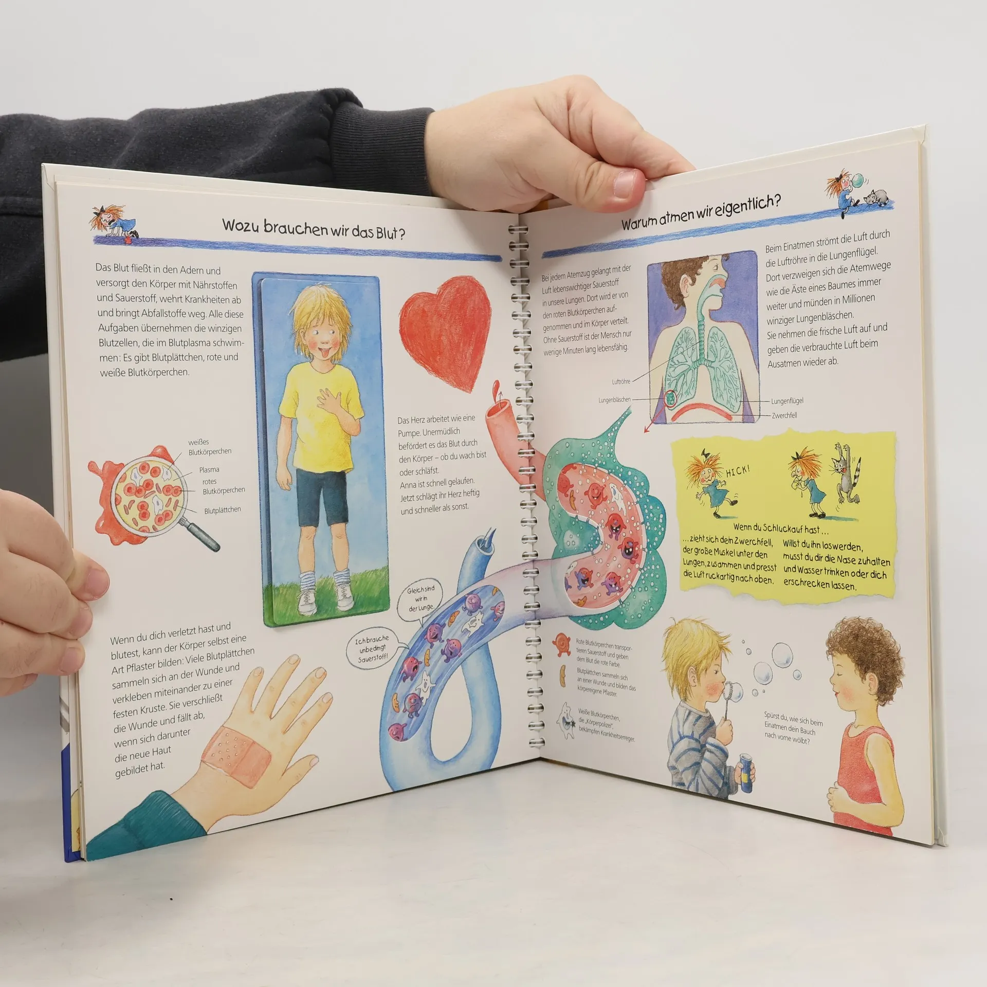 Was geschieht in unserem Körper? Die wichtigsten Themen wie Ernährung, Verdauung, Atmung, Blutkreislauf, Knochen und Muskeln werden durch spannende Klappen ganz spielerisch erklärt.