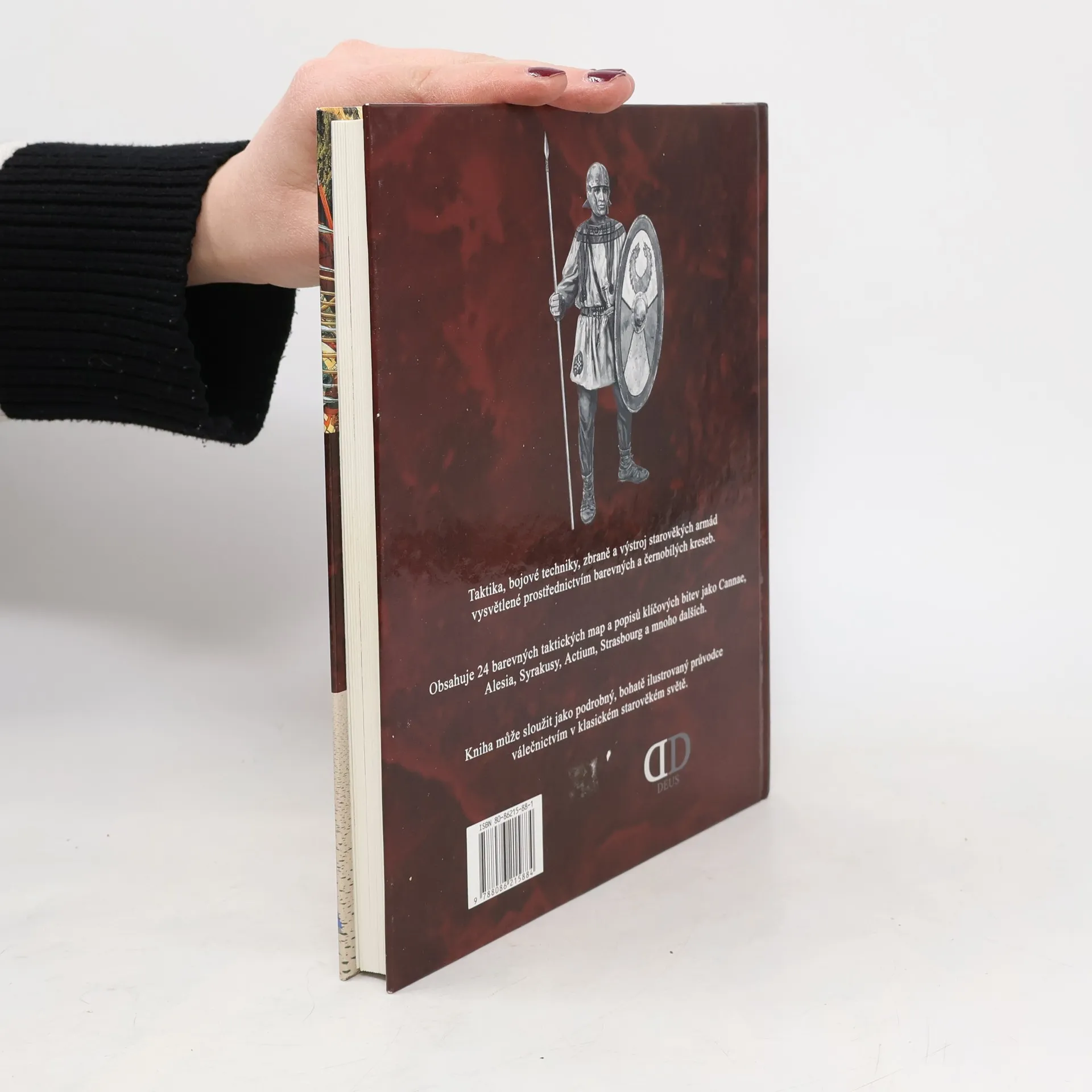 Bohatě ilustrovaná publikace přibližuje taktiku, bojové techniky, zbraně a výstroj starověkých armád od třetího tisíciletí před naším letopočtem do roku 500 našeho letopočtu. Základní informace o roli pěchoty a jízdního vojska coby hlavních součástí starověkých armád doplňuje pohled na dobovou roli velících složek a výklad průběhu nejslavnějších bitev starověku. Přílohu tvoří dvacet čtyři taktických map a popisů klíčových bitev (např. Cannae, Alesia, Syrakusy, Actium). (mlp.cz)... celý text