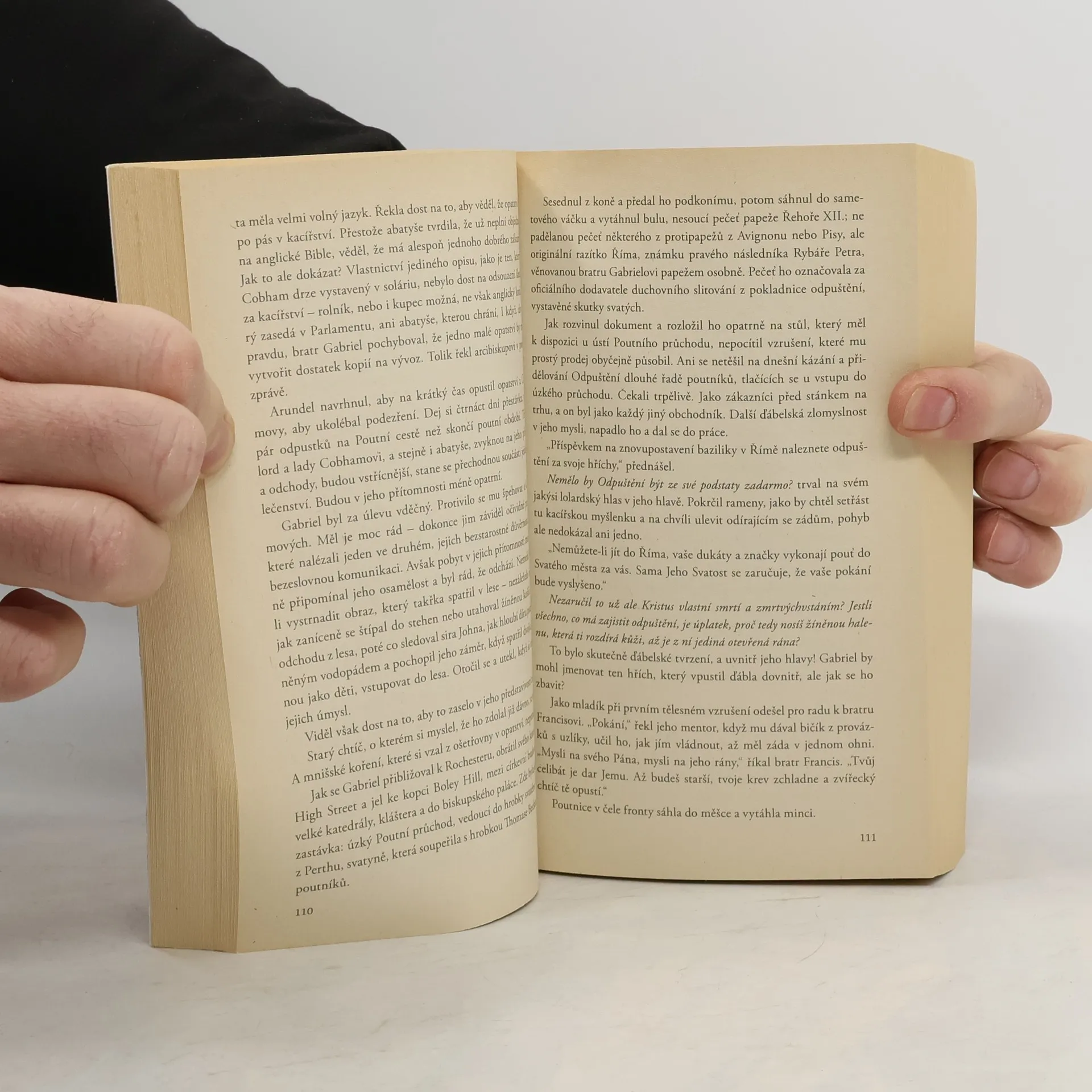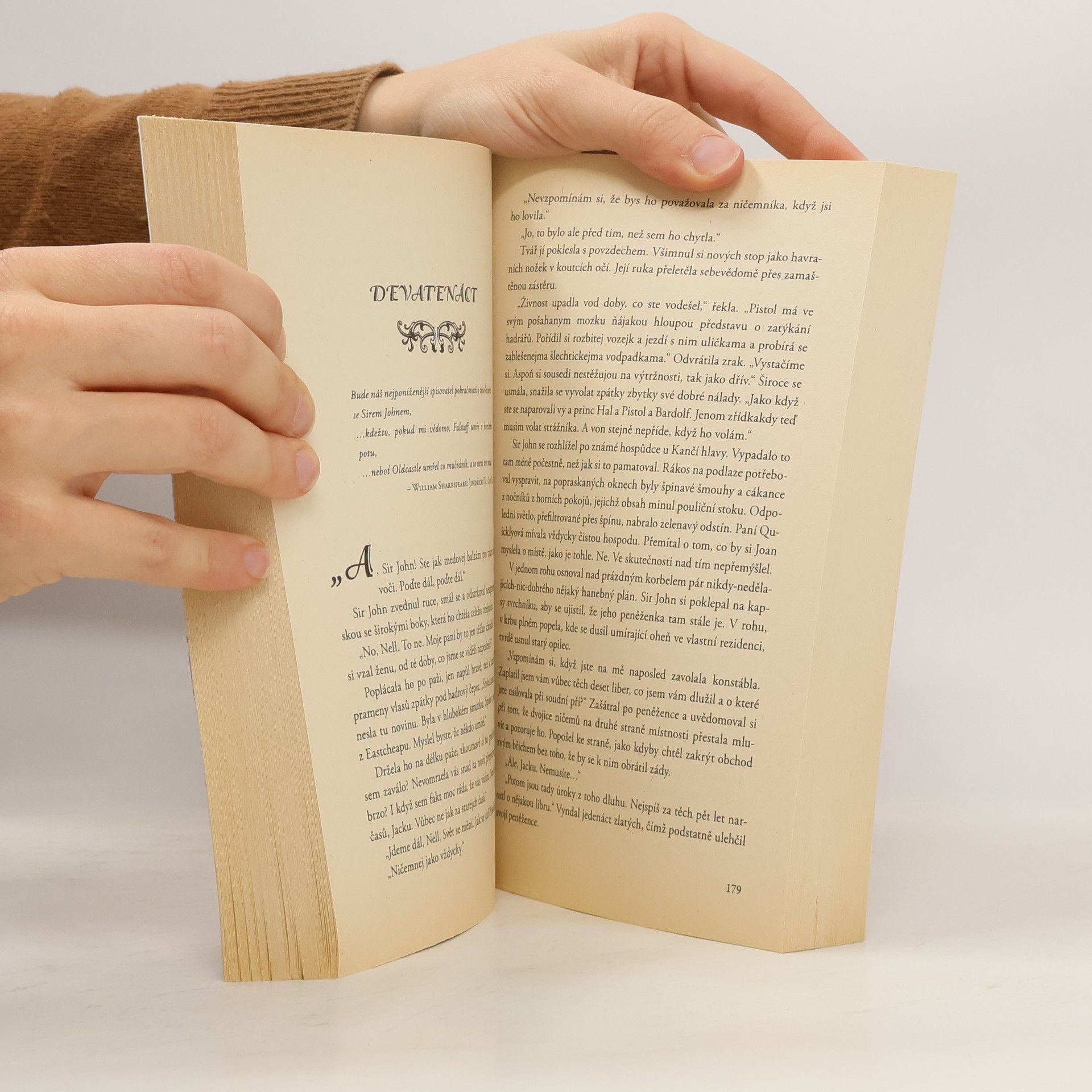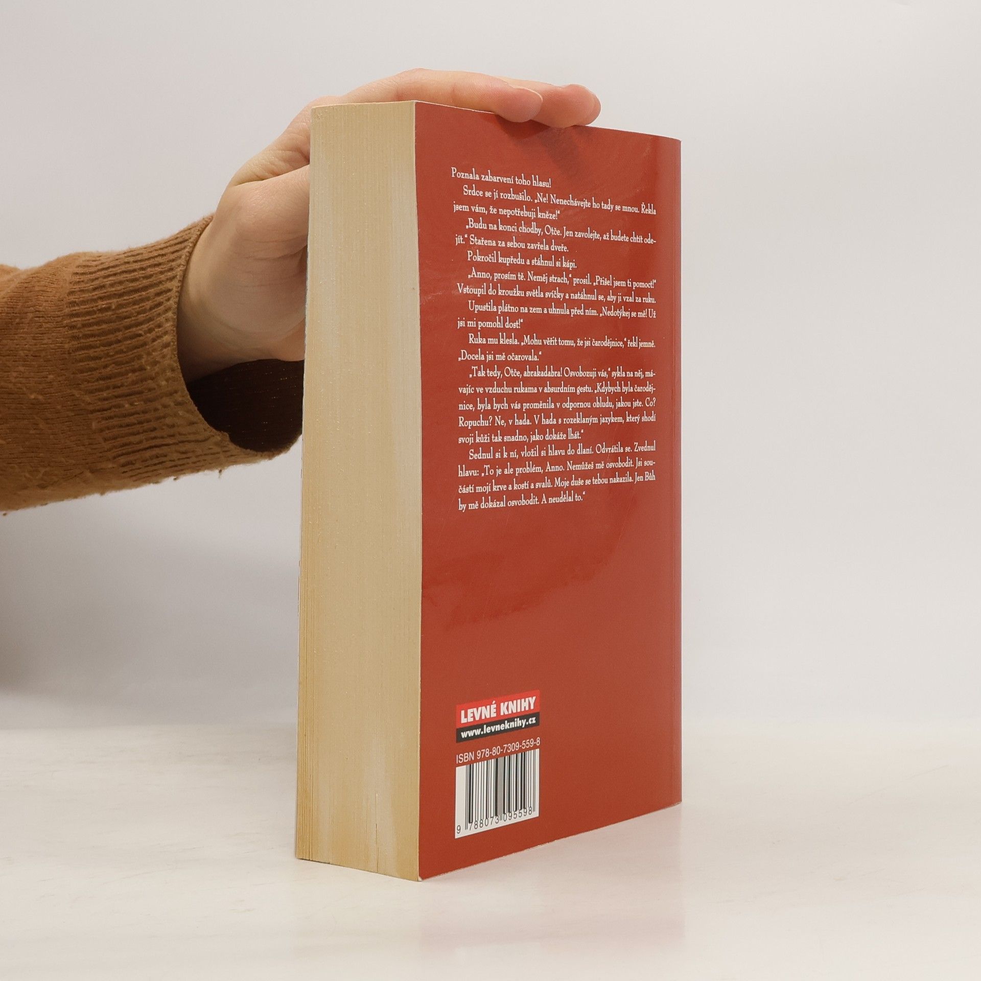 Napínavý román o lásce mezi kacířskými procesy středověké Prahy a Londýna... ... Poznala zabarvení toho hlasu! Srdce se jí rozbušilo. "Ne! Nenechávejte ho tady se mnou. Řekla jsem Vám, že nepotřebuji kněze!." "Budu na konci chodby, Otče. Jen zavolejte, až budete chtít odejít." Stařena za sebou zavřela dveře. Pokročil kupředu a stáhnul si kápi. "Anno, prosím tě. Neměj strach," prosil. "Přišel jsem ti pomoct!" Vstoupil do kroužku světla svíčky a natáhnul se, aby ji vzal za ruku. Upustila plátno na zem a uhnula před ním. "Nedotýkej se mě! Už jsi mi pomohl dost!" ...
