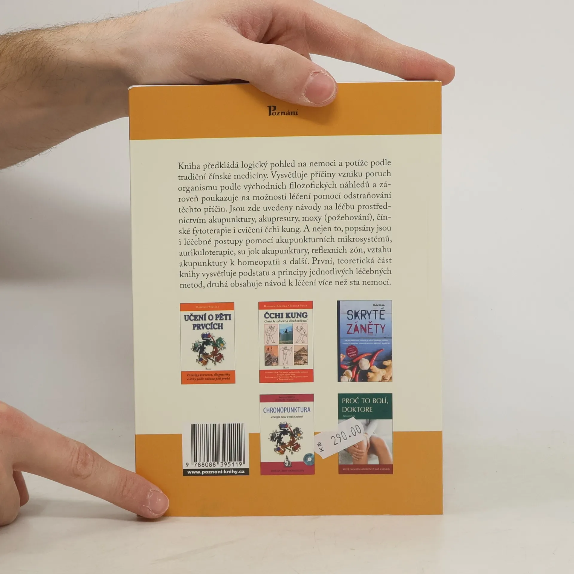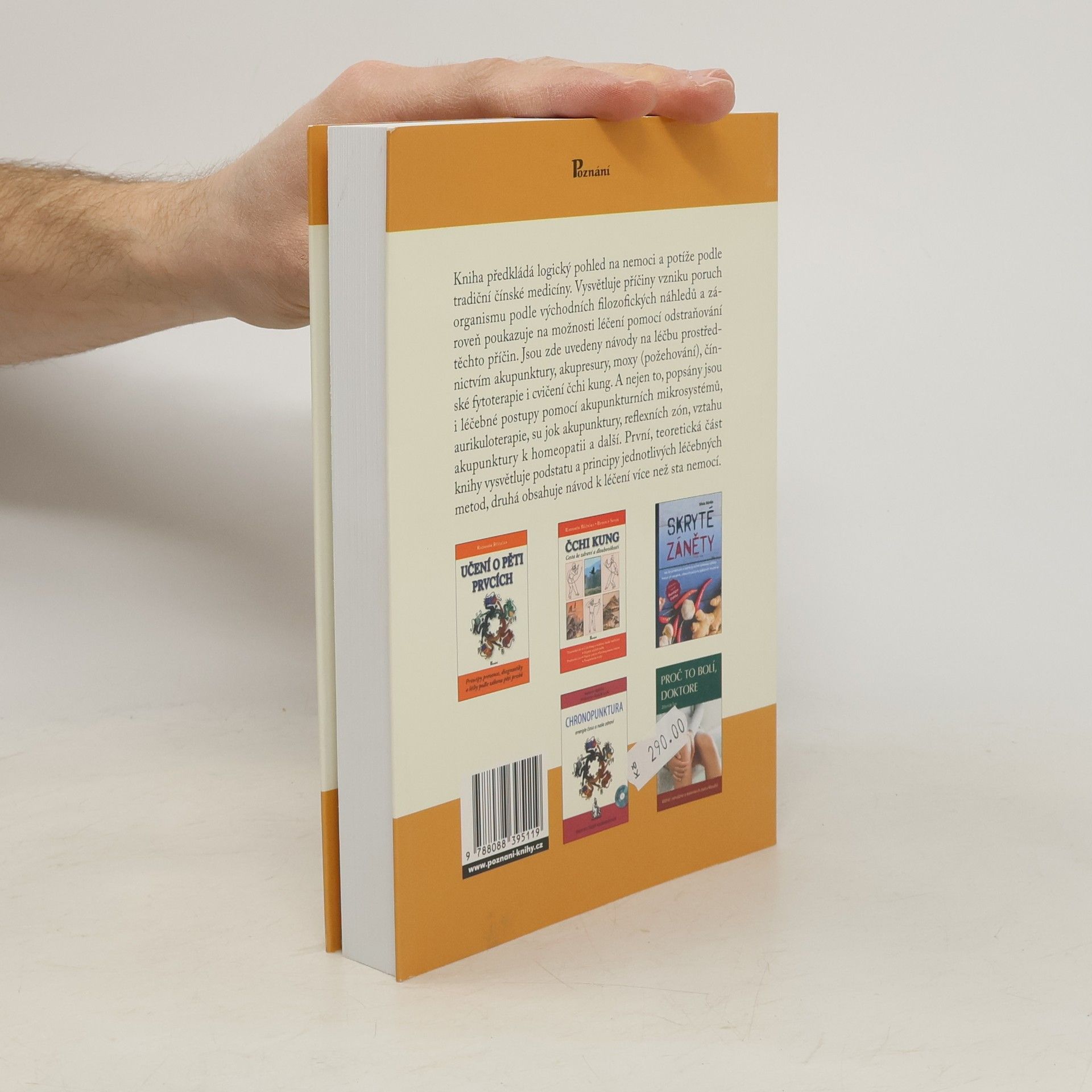 Kniha předkládá logický pohled na nemoci a potíže podle tradiční čínské medicíny. Vysvětluje příčiny vzniku poruch organismu podle východních filozofických náhledů a zároveň poukazuje na možnosti léčení pomocí odstraňování těchto příčin. Jsou zde uvedeny návody na léčbu prostřednictvím akupunktury, akupresury, moxy (požehování), čínské fytoterapie i cvičení čchi kung. A nejen to, popsány jsou i léčebné postupy pomocí akupunkturních mikrosystémů, aurikuloterapie, su jok akupunktury, reflexních zón, vztahů akupunktury k homeopatii a další. První, teoretická část knihy vysvětluje podstatu a principy jednotlivých léčebných metod, druhá obsahuje návod k léčení více než sta nemocí.