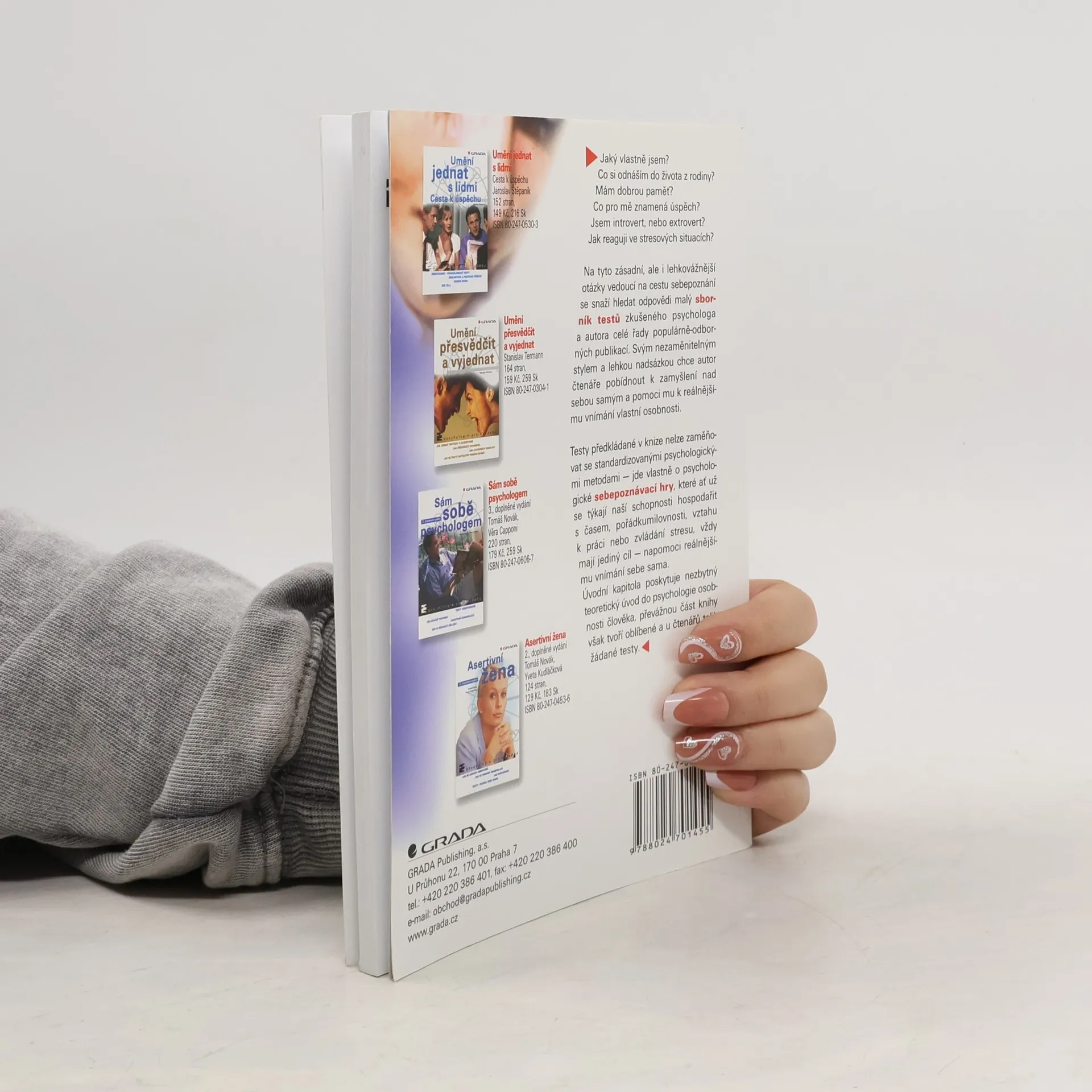 Kniha zkušeného psychologa a autora celé řady populárně-odborných publikací má přispět k zamyšlení nad sebou samým a k reálnějšímu vnímaní vlastní osobnosti. V úvodu se autor věnuje teorii osobnosti člověka. Převážnou část knihy však tvoří oblíbené a u čtenářů tolik žádané testy - psychologické sebepoznávací hry, které ať už se týkají naší schopnosti hospodařit s časem, pořádkumilovnosti, vztahu k práci nebo zvládání stresu, vždy mají jediný cíl - napomoci sebepoznání, které je základním předpokladem úspěšnosti a životní spokojenosti.... celý text