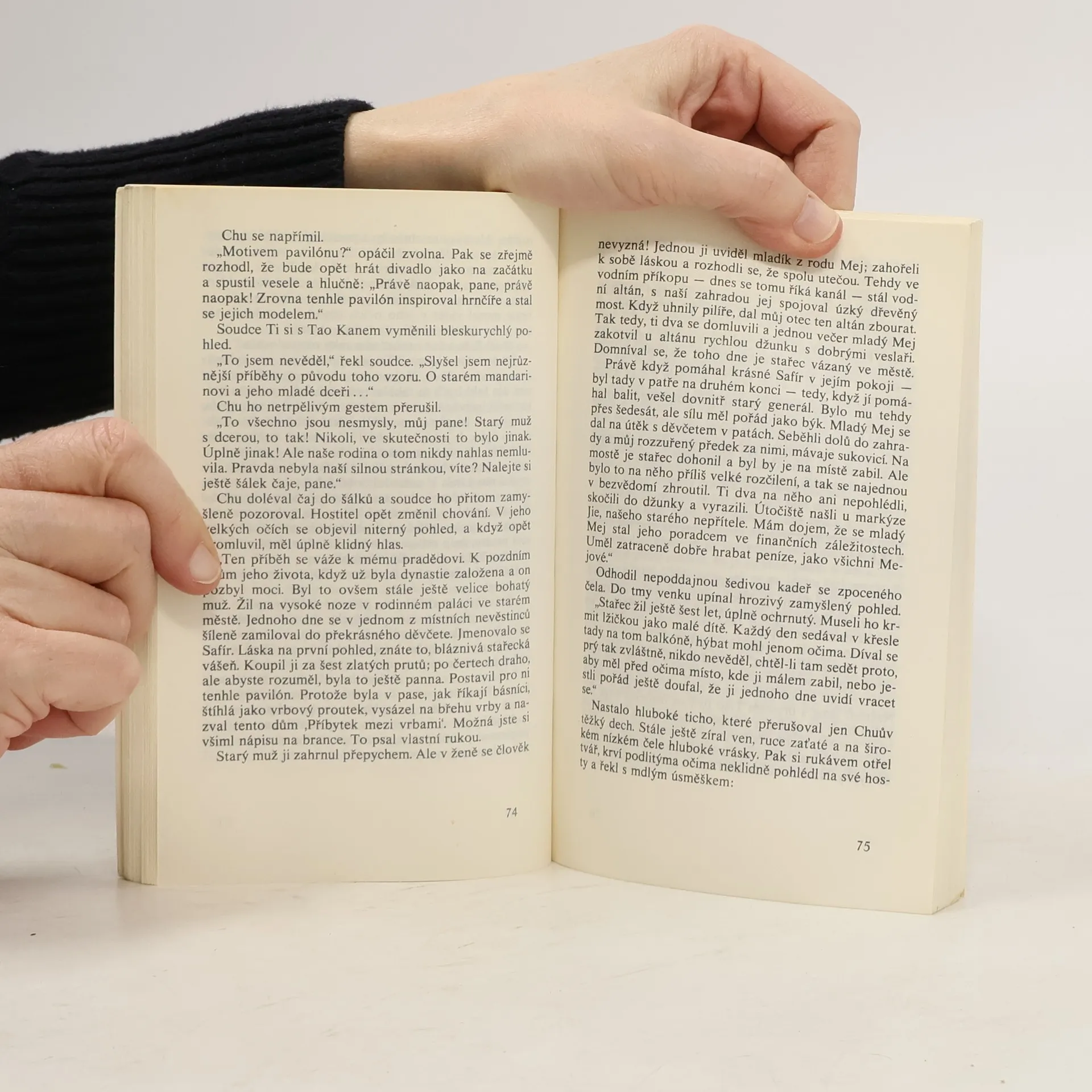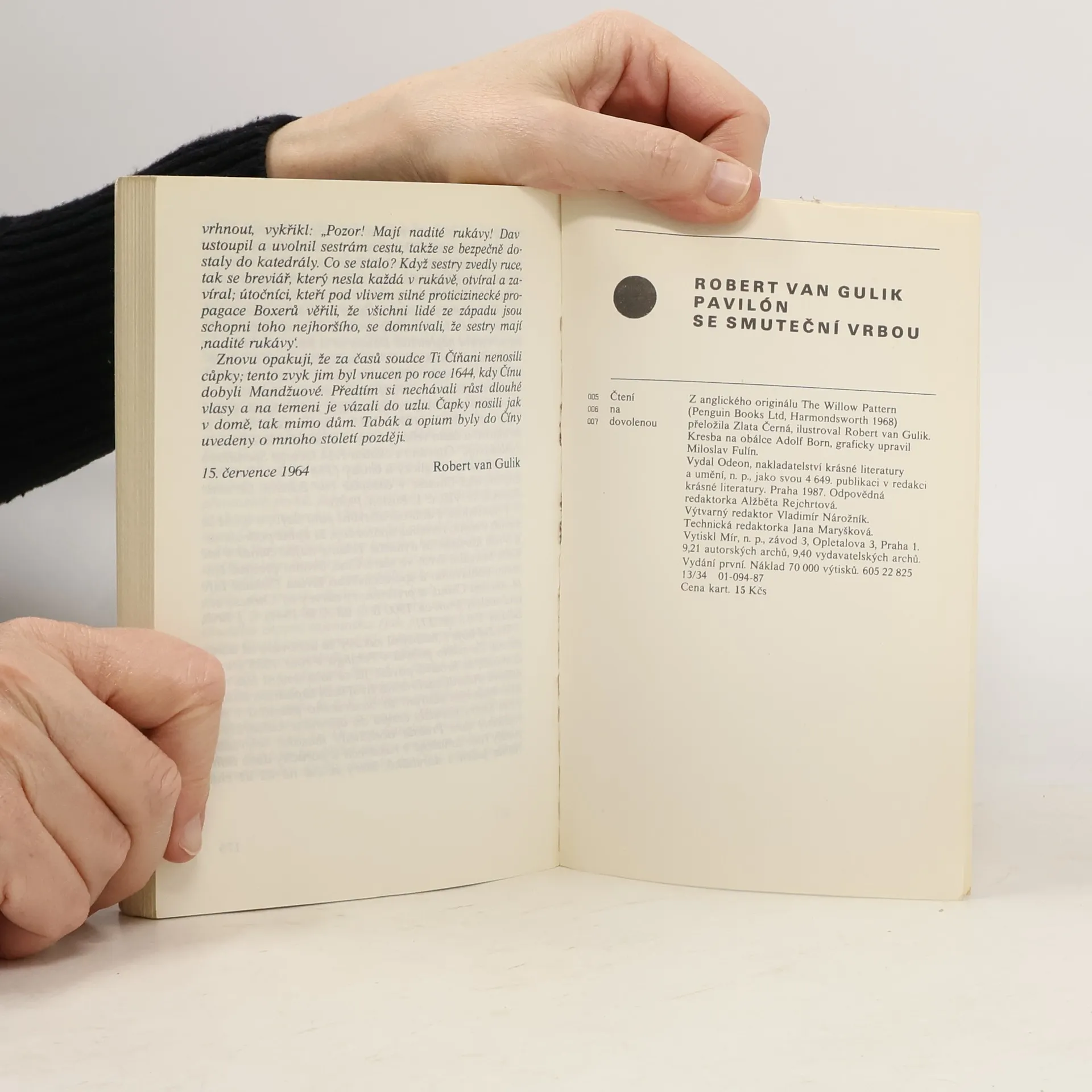 Tři případy, které opět řeší soudce Ti, se odehrávají v Číně v 7. století našeho letopočtu. Soudce Ti se zde za pomoci svých tří pomocníků zabývá vraždou potomků ze starých šlechtických rodů Ia a Meje, které spolu velice úzce souvisejí. Jakou roli v tom hraje motiv pavilónu se smuteční vrbou, loutkové divadlo, modrobílá porcelánová váza a kámen na roztírání tuše? Dovětek autora, černobílé autorovy ilustrace, na obálce ilustrace Adolfa Borna. 180 stran. Vydal Odeon v r. 1987 v edici Čtení na dovolenou.