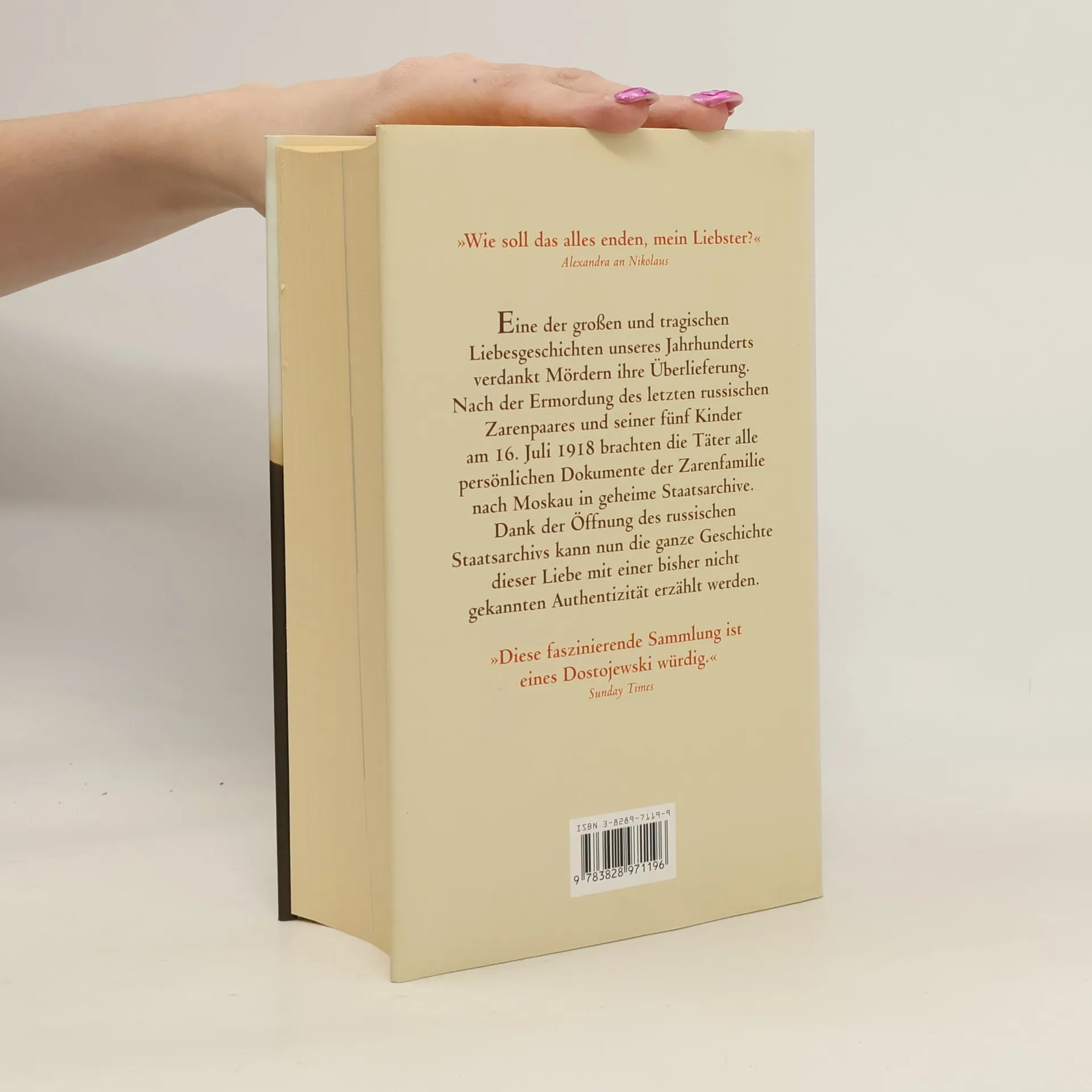 Eine der großen und tragischen Liebesgeschichten unseres Jahrhunderts verdankt Mördern ihre Überlieferung. Nach der Ermordung des letzten russischen Zarenpaares und seiner fünf Kinder am 16. Juli 1918 brachten die Täter alle persönlichen Dokumente der Zarenfamilie nach Moskau in geheime Staatsarchieve. Dank der Öffnung des russischen Staatsarchivs kann nun die ganze Geschichte dieser Liebe mit einer bisher nicht gekannten Authentizität erzählt werden.