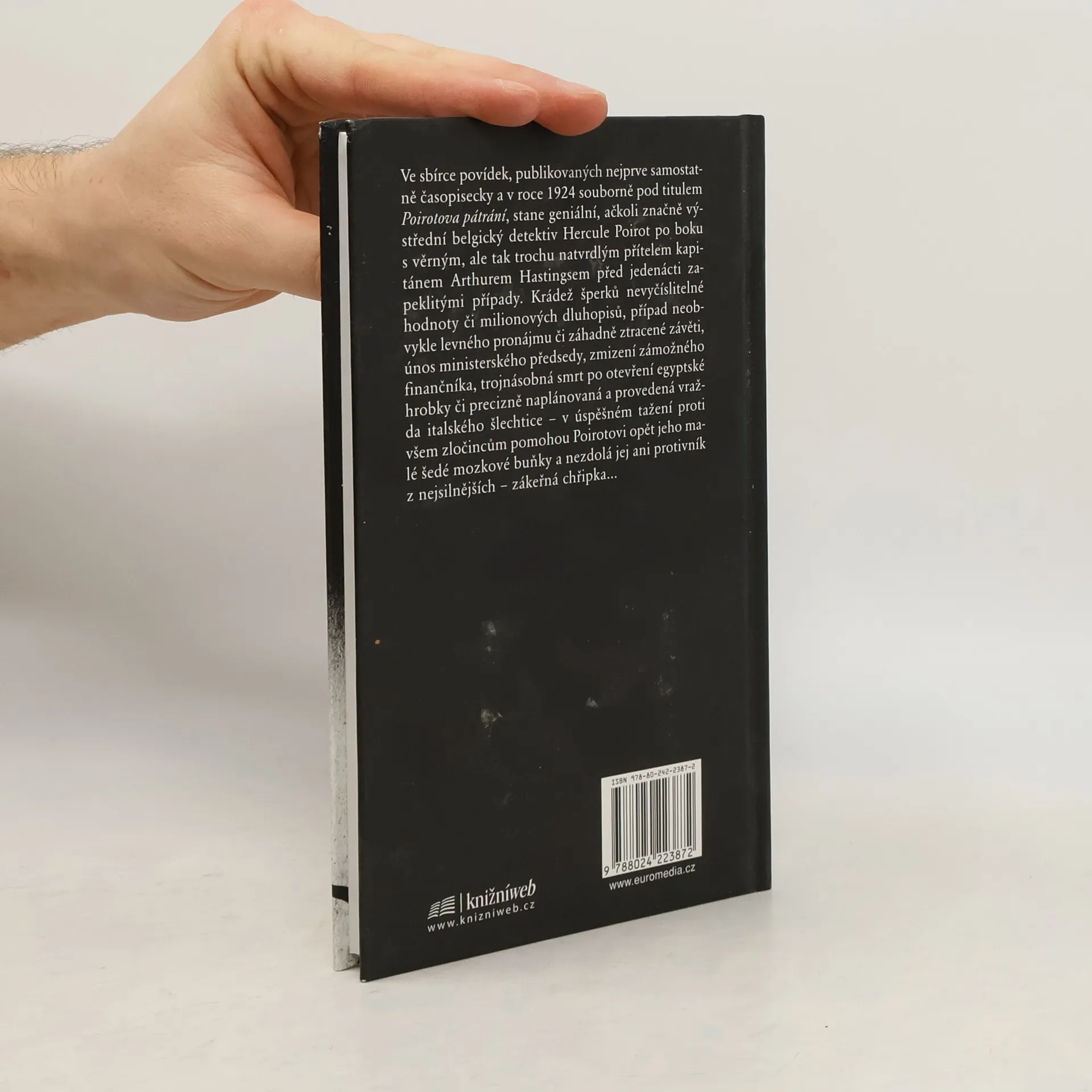 Do sbírky povídek pod titulem Poirotova pátrání zahrnula Agatha Christie jedenáct příběhů, v nichž belgický detektiv Hercule Poirot – za pomoci svých nezdolných šedých mozkových buněk a s věrným přítelem kapitánem Hastingsem po boku – úspěšně a s grácií sobě vlastní řeší mimo jiné krádeže šperků či milionových dluhopisů, případ ztracené závěti či levného bytu, únos ministerského předsedy nebo dobrodružství s egyptskou hrobkou. 2. vydání.