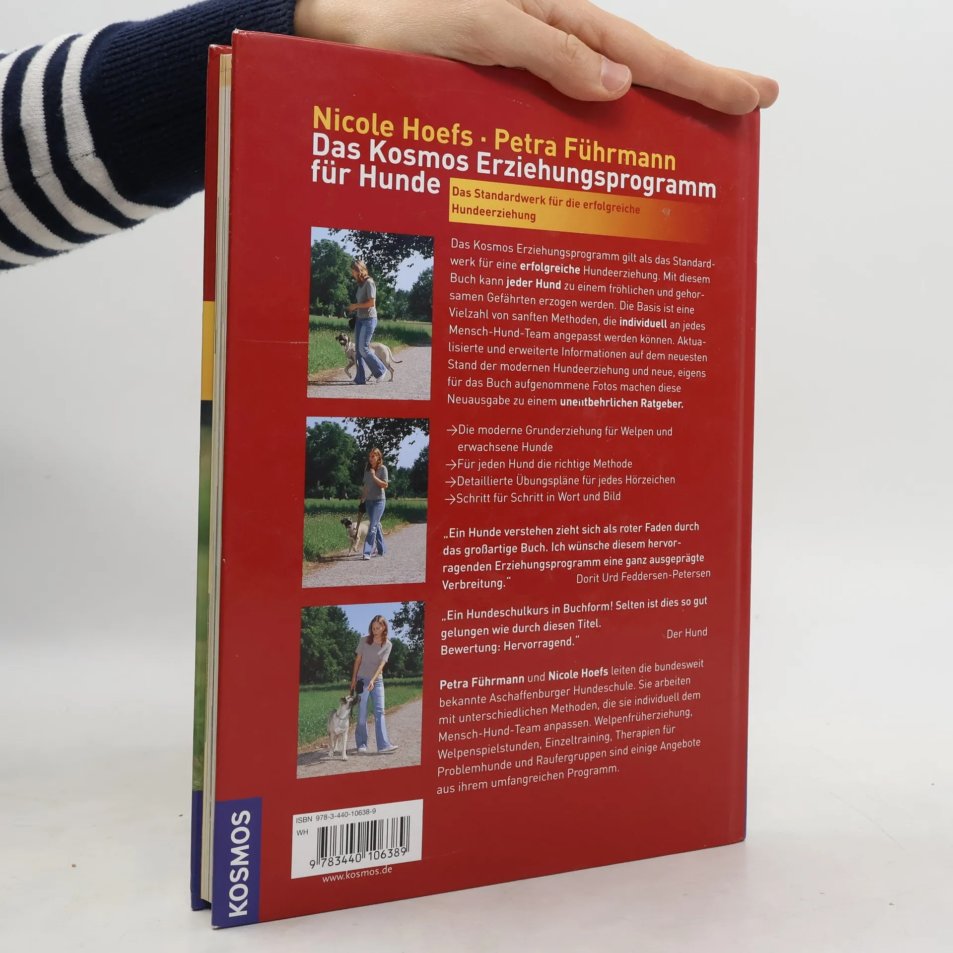 Das Kosmos Erziehungsprogramm gilt als das Standardwerk für eine erfolgreiche Hundeerziehung. Mit diesem Buch kann jeder Hund zu einem fröhlichen und gehorsamen Gefährten erzogen werden. Die Basis ist eine Vielzahl von sanften Methoden, die individuell an jedes Mensch-Hund-Team angepasst werden können. Weit über 1.000 Hunde haben die Autorinnen mit diesen Methoden erzogen. Nach sieben Jahren ist es nun an der Zeit für eine Neuausgabe, die wieder über Jahre hinaus Maßstäbe setzen wird: Aktualisierte und erweiterte Informationen auf dem neuesten Stand der modernen Hundeerziehung und völlig neue, eigens für das Buch aufgenommene Fotos machen es zu einem unentbehrlichen Ratgeber für jeden Hundehalter.