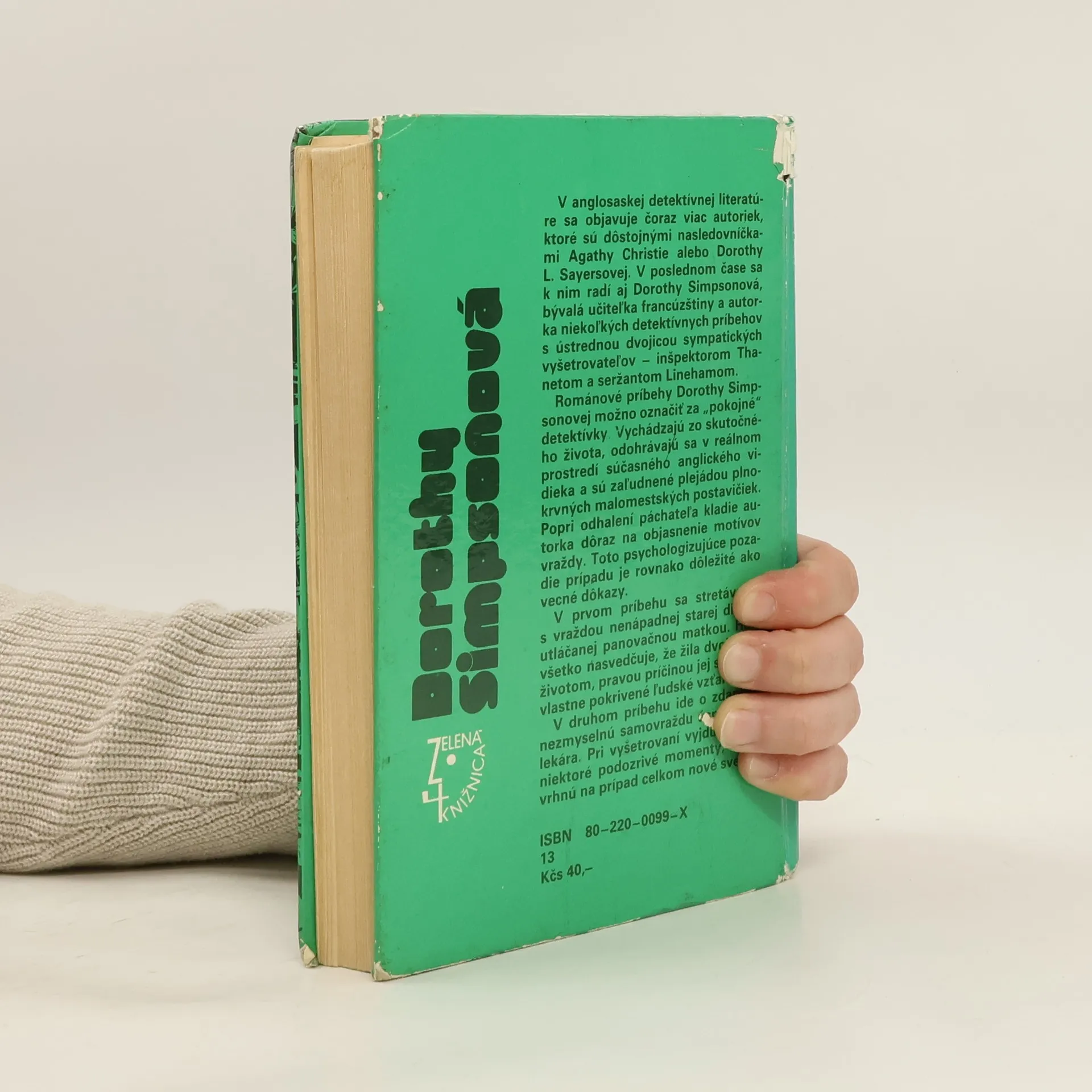 V anglosaskej detektívnej literatúre sa objavuje čoraz viac autoriek, ktoré sú dôstojnými nasledovníčkami Agathy Christie alebo Dorothy Sayersovej. Radí sa k nim aj Dorothy Simpsonová, bývalá učiteľka francúzštiny a autorka niekoľkých detektívnych príbehov s ústrednou dvojicou sympatických vyšetrovateľov – inšpektorom Thanetom a seržantom Linehamom. Románové príbehy Dorothy Simpsonovej možno označiť za „pokojné“ detektívky. Vychádzajú zo skutočného života, odohrávajú sa v reálnom prostredí anglického vidieka a sú zaľudnené plejádou plnokrvných malomestských postavičiek. Popri odhalení páchateľa kladie autorka dôraz na objasnenie motívov vraždy. Toto psychologizujúce pozadie prípadu je rovnako dôležité ako vecné dôkazy. V prvom príbehu sa stretávame s vraždou nenápadnej starej dievky utláčanej panovačnou matkou. Hoci všetko nasvedčuje, že žila dvojakým životom, pravou príčinou jej smrti sú vlastne pokrivené ľudské vzťahy. V druhom príbehu ide o zdanlivo nezmyselnú samovraždu úspešného lekára. Pri vyšetrovaní vyjdú najavo niektoré podozrivé momenty, ktoré vrhnú na prípad celkom nové svetlo.