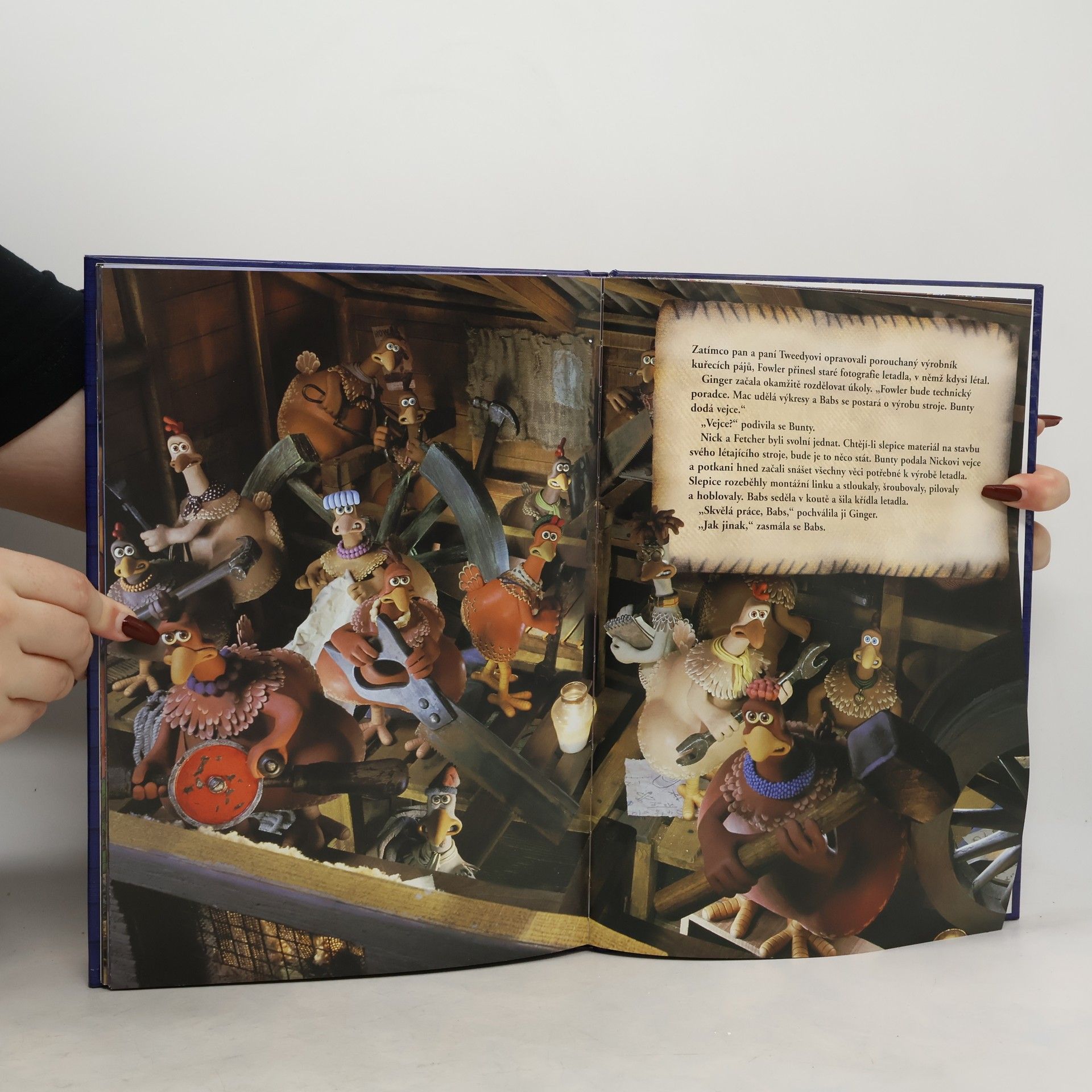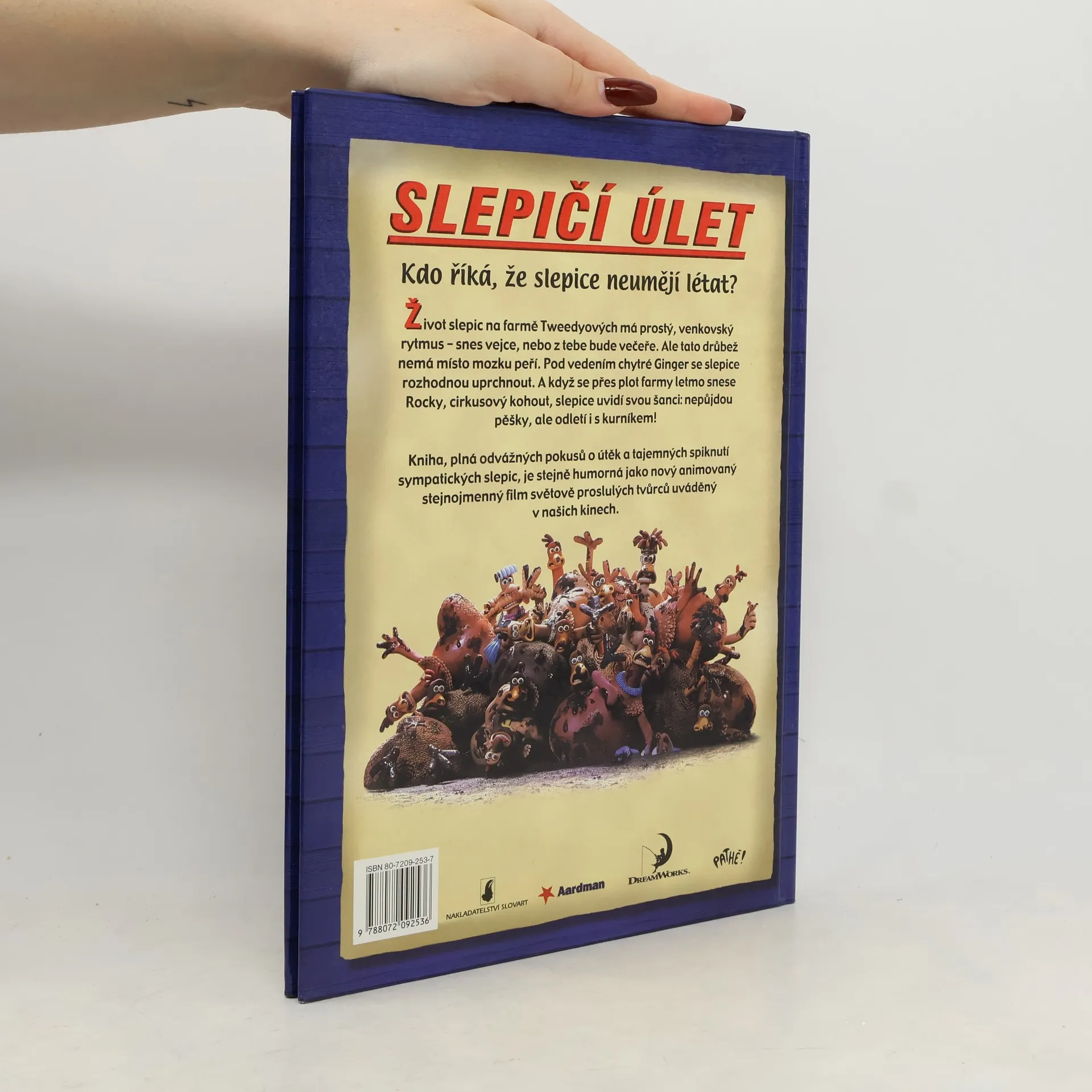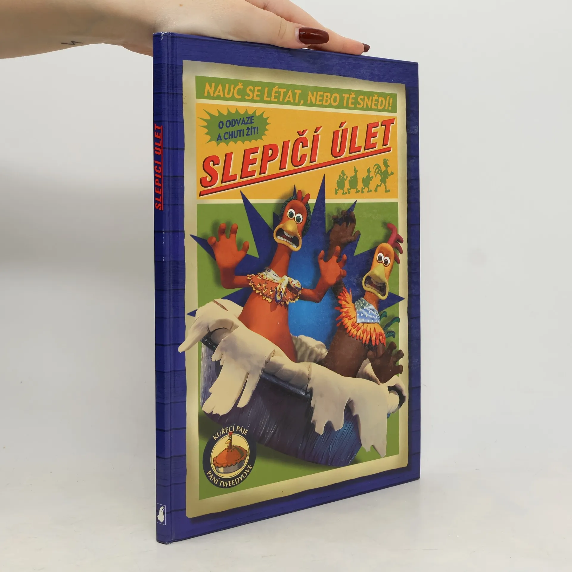 Kniha podle animovaného filmu stejného názvu. Život slepic na farmě Tweedyových má prostý, venkovský rytmus - snes vejce, nebo z tebe bude večeře. Ale tato drůbež namá místo mozku peří Pod vedením chytré Ginger se slepice rozhodnou uprchnout. A když se přes plot farmy letmo snese Rocky, cirkusový kohout, slepice uvidí svou šanci: nupůjdou pěšky, ale odletí i s kurníkem.
