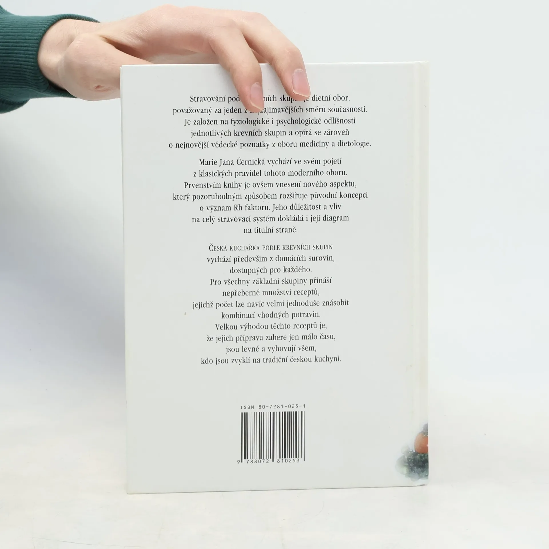 Stravování podle krevních skupin je dietní obor, považovaný za jeden z nejzajímavějších směrů současnosti. Je založen na fyziologické i psychologické odlišnosti jednotlivých krevních skupin a opírá se zároveň o nejnovější vědecké poznatky z oboru medicíny a dietologie. Česká kuchařka podle krevních skupin vychází především z domácích surovin, dostupných pro každého. Pro všechny základní skupiny přináší nepřeberné množství receptů, jejichž počet lze navíc velmi jednoduše znásobit kombinací vhodných potravin. Velkou výhodou těchto receptů je, že jejich příprava zabere jen málo času, jsou levné a vyhovují všem, kdo jsou zvyklí na tradiční českou kuchyni. Velmi úspěšná kniha Marie Černické využívá nejnovějších poznatků o zdraví a krevních skupinách a aplikuje je na české poměry. Prvenstvím knihy je rozlišení významu Rh faktoru. Publikace obsahuje velké množství receptů, vhodných pro všechny krevní skupiny a typy.