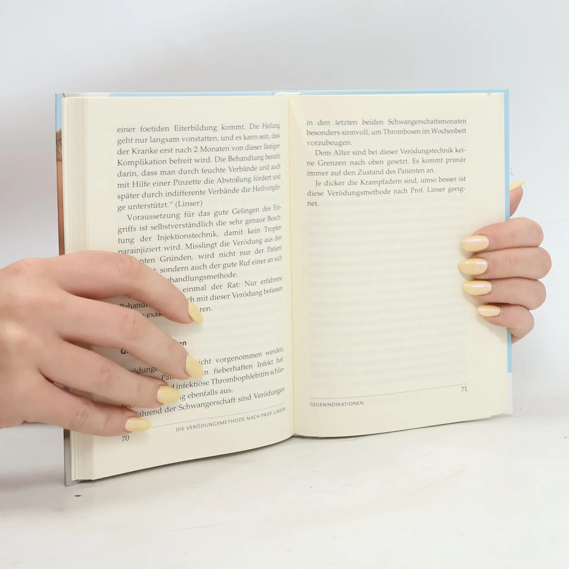 Zahllose Menschen haben Krampfadern. Jedes Jahr unterziehen sich Tausende von Patienten einer nicht ungefährlichen Operation, um ihre Krampfadern entfernen zu lassen. Es gibt jedoch eine bessere, unblutige, dauerhafte, ambulante Möglichkeit der Beseitigung, die heute an den Unis leider nicht mehr gelehrt wird. Dr. Bruker: „Seit der genialen Erfindung von Prof. Dr. Paul Linser, Krampfadern durch Injektion einer konzentrierten Kochsalzlösung zu beseitigen, ist die operative Entfernung der Krampfadern als Kunstfehler zu bezeichnen.“