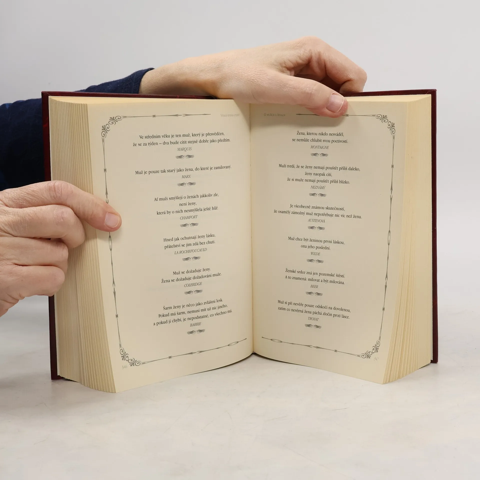 Kniha obsahuje nespočet známých i neznámých citátů, od známých i neznámých autorů. Napoleon, Seneca, Shakespeare, Remarque, Cicero, Wilde, Lichtenberg, Stendhal a mnoho dalších. Jsou rozděleny do kapitol: Moudra o životě, Moudra o lásce, Moudra o přátelství, Moudra o manželství, O dětech a rodině, O mládí a stáří, Moudra o štěstí, O mužích a ženách, Antická moudrost, Čínská moudrost, Přísloví a moudra, O knize a umění Sestavil Karel Blaschke.
