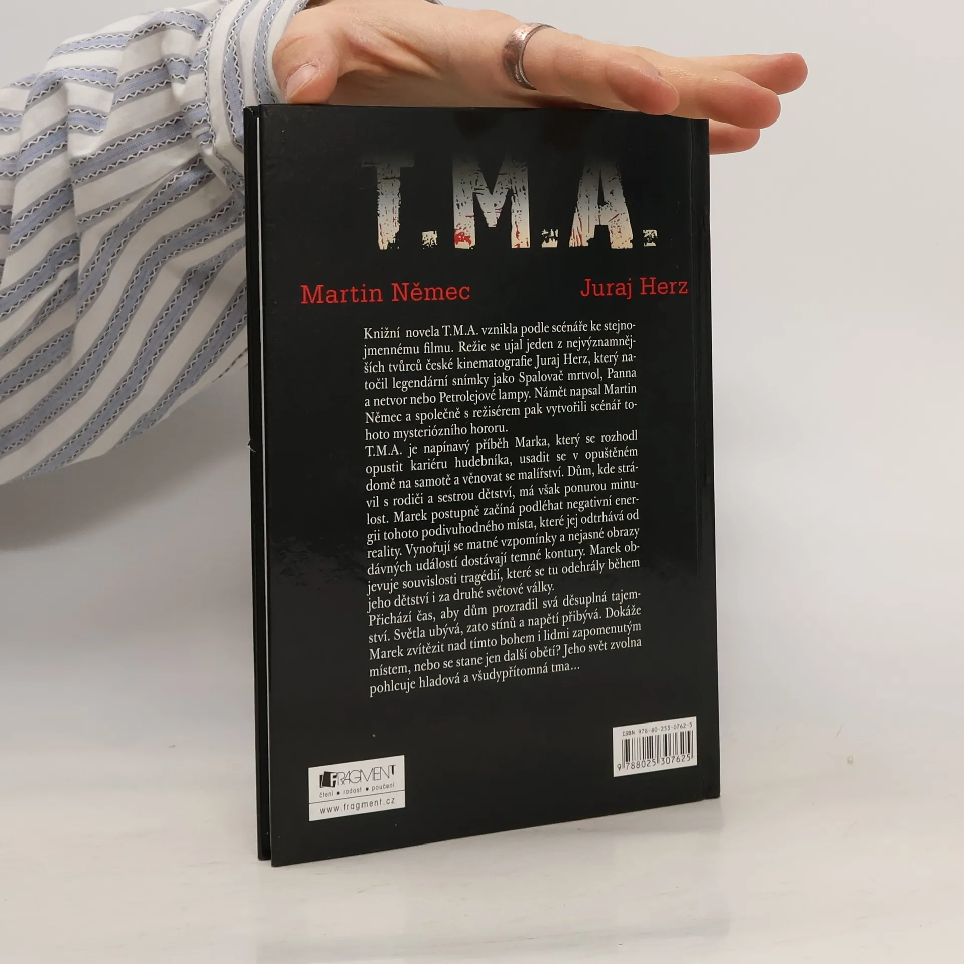 Knižní novela T.M.A. vznikla podle scénáře ke stejnojmennému filmu. Režie se ujal jeden z nejvýznamnějších tvůrců české kinematografie Juraj Herz, který natočil legendární snímky jako Spalovač mrtvol, Panna a netvor nebo Petrolejové lampy. Námět napsal Martin Němec a společně s režisérem pak vytvořili scénář tohoto mysteriózního hororu. T.M.A. je napínavý příběh Marka, který se rozhodl opustit kariéru hudebníka, usadit se v opuštěném domě na samotě a věnovat se malířství. Dům, kde strávil s rodiči a sestrou dětství, má však ponurou minulost. Marek postupně začíná podléhat negativní energii tohoto podivuhodného místa, které jej odtrhává od reality. Vynořují se matné vzpomínky, a nejasné obrazy dávných událostí dostávají temné kontury. Marek objevuje souvislosti tragédií, které se tu odehrály během jeho dětství i za druhé světové války. Přichází čas, aby dům prozradil svá děsuplná tajemství. Světla ubývá, zato stínů a napětí přibývá. Dokáže Marek zvítězit nad tímto bohem i lidmi zapomenutým místem, nebo se stane jen další obětí? Jeho svět zvolna pohlcuje hladová a všudypřítomná tma...