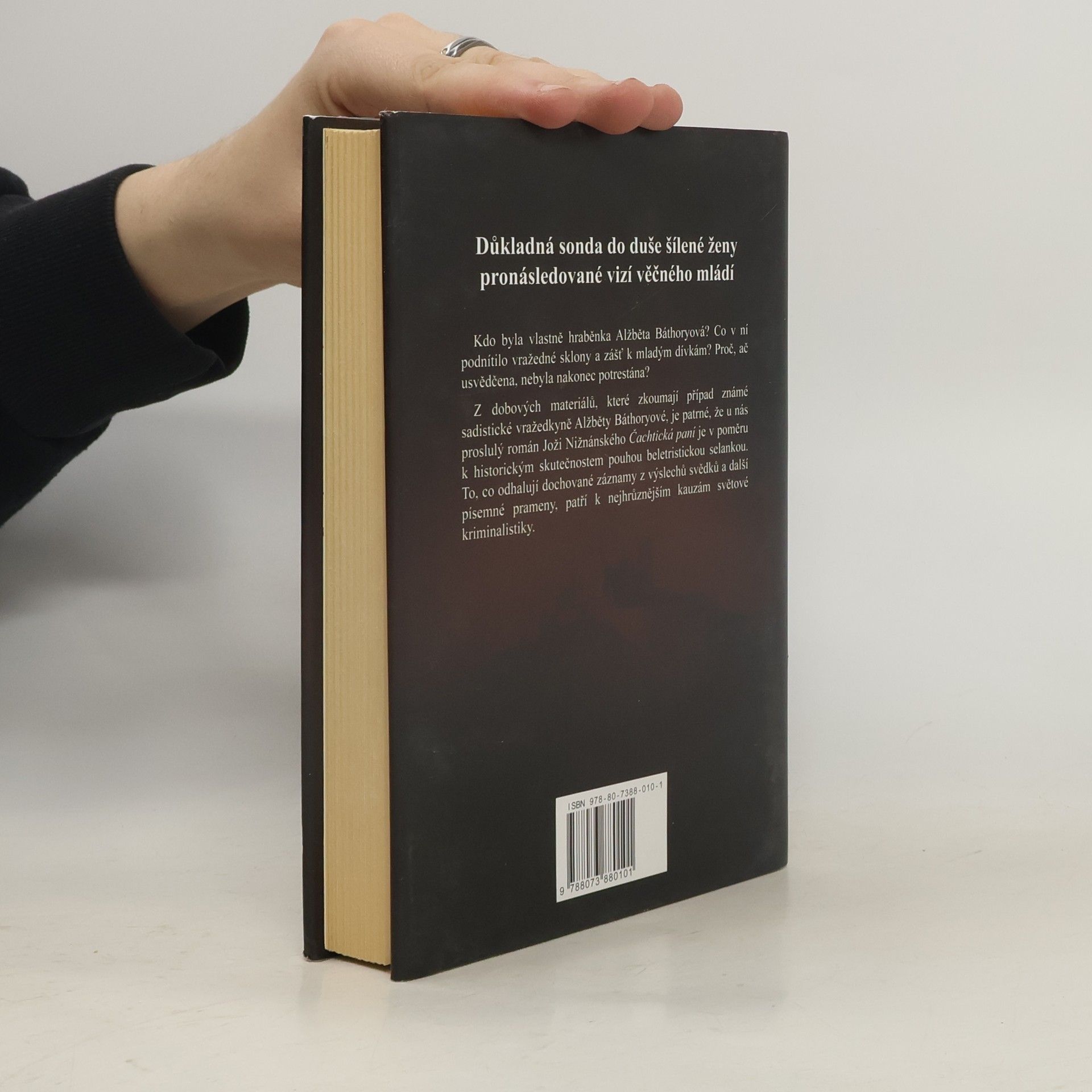 Z dobových materiálů, které zkoumají případ známé sadistické vražedkyně Alžběty Báthoryové, je patrné, že u nás proslulý román Joži Nižnánského Čachtická paní je v poměru k historickým skutečnostem pouhou beletristickou selankou. To, co odhalují dochované záznamy z výslechů svědků a další písemné prameny, patří k nejhrůznějším kauzám světové kriminalistiky. Kdo byla vlastně hraběnka Alžběta Báthoryová? Co v ní podnítilo vražedné sklony a zášť k mladým dívkám? Proč, ač usvědčena, nebyla nakonec potrestána? Kniha Vladimíra Lišky nabízí důkladnou sondu do duše šílené ženy pronásledované vizí věčného mládí, ale také do doby, která její temný osud přivedla na svět - slovenských Uher 16. století.