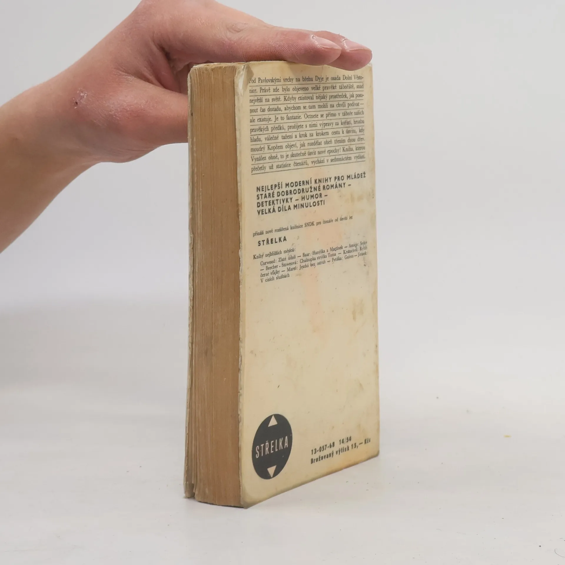 Na podkladě světově významných archeologických nálezů v českých zemích, zejména na Moravě, vyvolává autor formou románu pro mládež obraz naší přírody a života prvotně pospolné společnosti v době kamenné před dvaceti až třiceti tisíci lety. Tenkrát byla vypuzena z věstonického sídliště tlupa diluviálních lovců, která za neustálých bojů s hladem, přírodou a nepřáteli dospěje do konečného sídla na místech dnešní Libně. 13-057-68