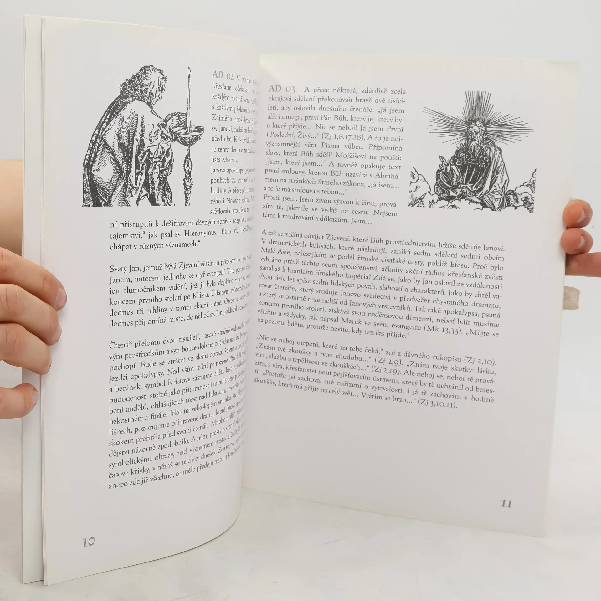 Malíř Jan Souček dávno snil o výtvarném ztvárnění apokalypsy. Svým dílem měl vyzkoušeny výtvarné finesy, které umožňují ztvárnit i nepochopitelné, nepopsatelné a neviditelné. Apokalypsu přečteme za dvě hodiny, ale můžeme nad ní hloubat celý život. Vyskytují se tu šelmy a andělé a pečetě a svitky, i zhouba, která má postihnout celé lidstvo. Zejména s koncem každého století či tisíciletí pociťují lidé strach z přelomu doby. Dnes o to aktuálněji, že naše doba je dokonce naší vlastní zásluhou navštívena možným koncem více než kterákoli jiná. Cítíme, že kdesi za horizontem času vychází nová civilizační etapa, jsme na tahu, a Součkovo dílo, které nás může přimět i ke zpytování svědomí, přišlo v pravý čas. Vraťme se však ke smyslu apokalypsy. Každá sekta se snaží využít čísel a obrazů v textu, kreslí do detailu počty nás, kdo budeme zatraceni nebo uchráněni, hledá tajemství prokletého sledu vládců. Neboť každý čas v Janově vyprávění nacházel sám sebe, a sled posledních dnů podle koloritu, technických možností a podoby času. Ve skutečnosti je všechno mnohem prostší.