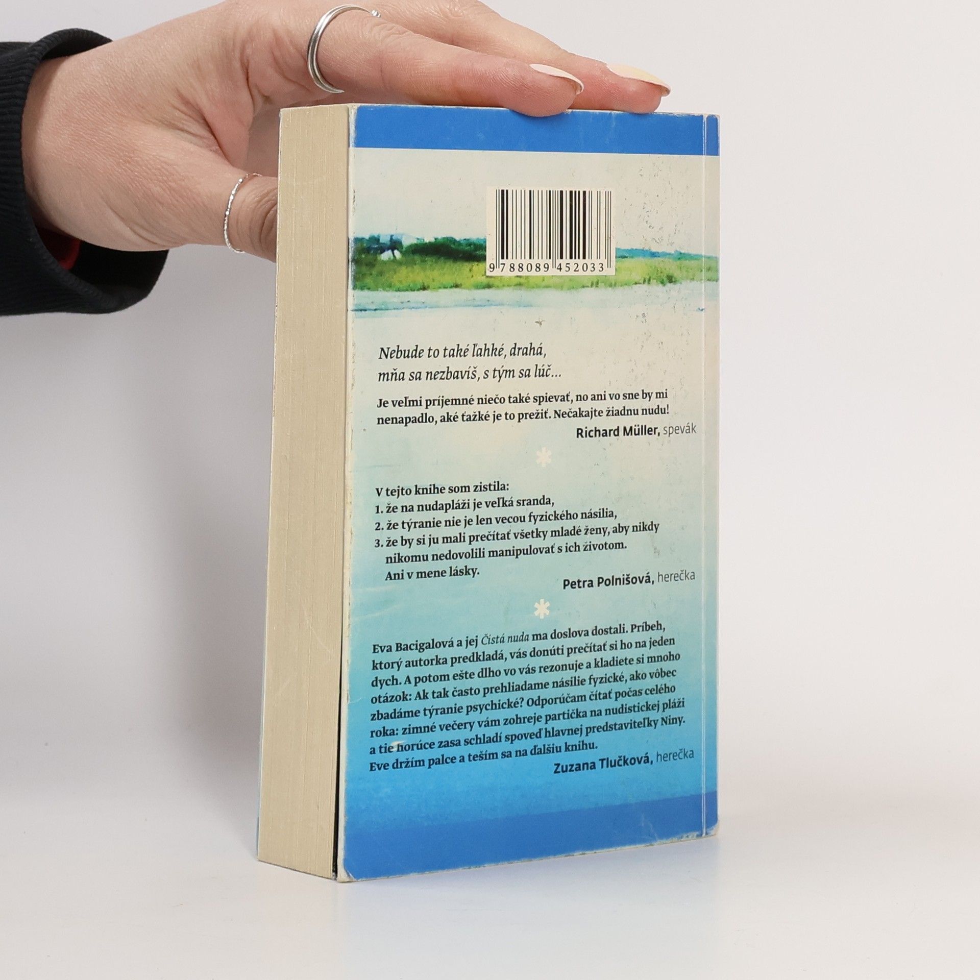 Ďalšia kniha z vydavateľstva Evitapress – Čistá nuda. E-mailová spoveď hlavnej hrdinky Niny je natoľko autentická, že čitateľ môže mať pocit, že autorka Eva Bacigalová opisuje etapu vlastného života. Písaním e-mailov Denisovi podstupuje psychoterapiu. Knihu odporúčam ako povinné čítanie pre nezadané, najmä mladé dievčatá, ktorým môže pomôcť otvoriť oči a zbaviť sa ružových okuliarov. Autorka upozorňuje na ťažkosti pri voľbe partnera, keď je problém odhaliť, aký typ človeka máme pred sebou. Hlavná hrdinka čelí patologickej žiarlivosti svojho o 20 rokov staršieho manžela, ktorá sa skrýva za starostlivosť a lásku. Navonok je všetko v poriadku, no za dverami bytu sa situácia dramaticky mení, pričom citové vydieranie vedie Ninu k vážnym psychickým a fyzickým problémom. Autorka poukazuje na syndróm „zlatej klietky“, kde starší muž sa bojí stratiť mladšiu partnerku. Nina si neustále pripomína slová terapeuta o potrebe starať sa o seba a hľadať vlastné šťastie. Kniha síce nie je literárny skvost, ale má svoje posolstvo a určite patrí do prázdninovej batožiny. Odporúčam!