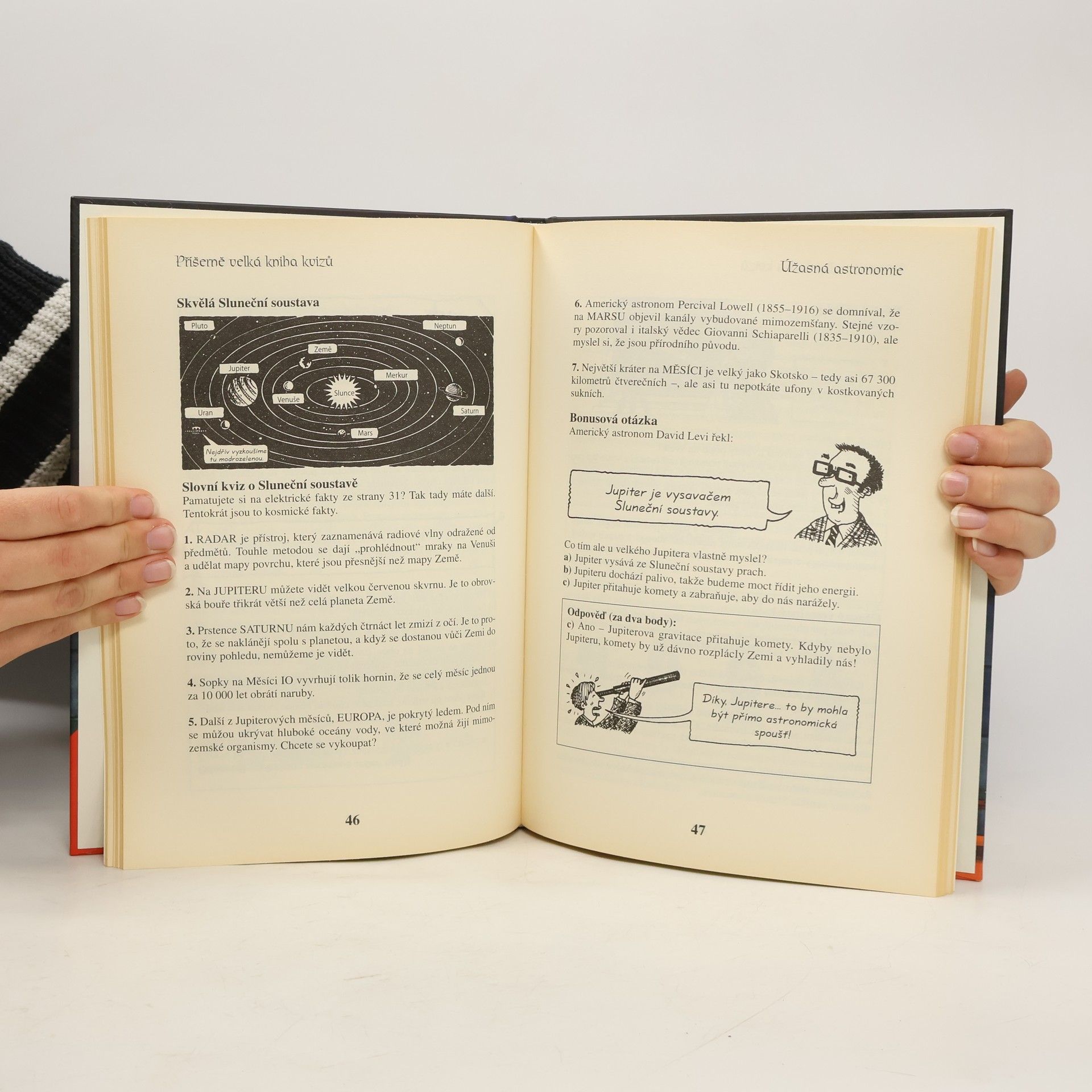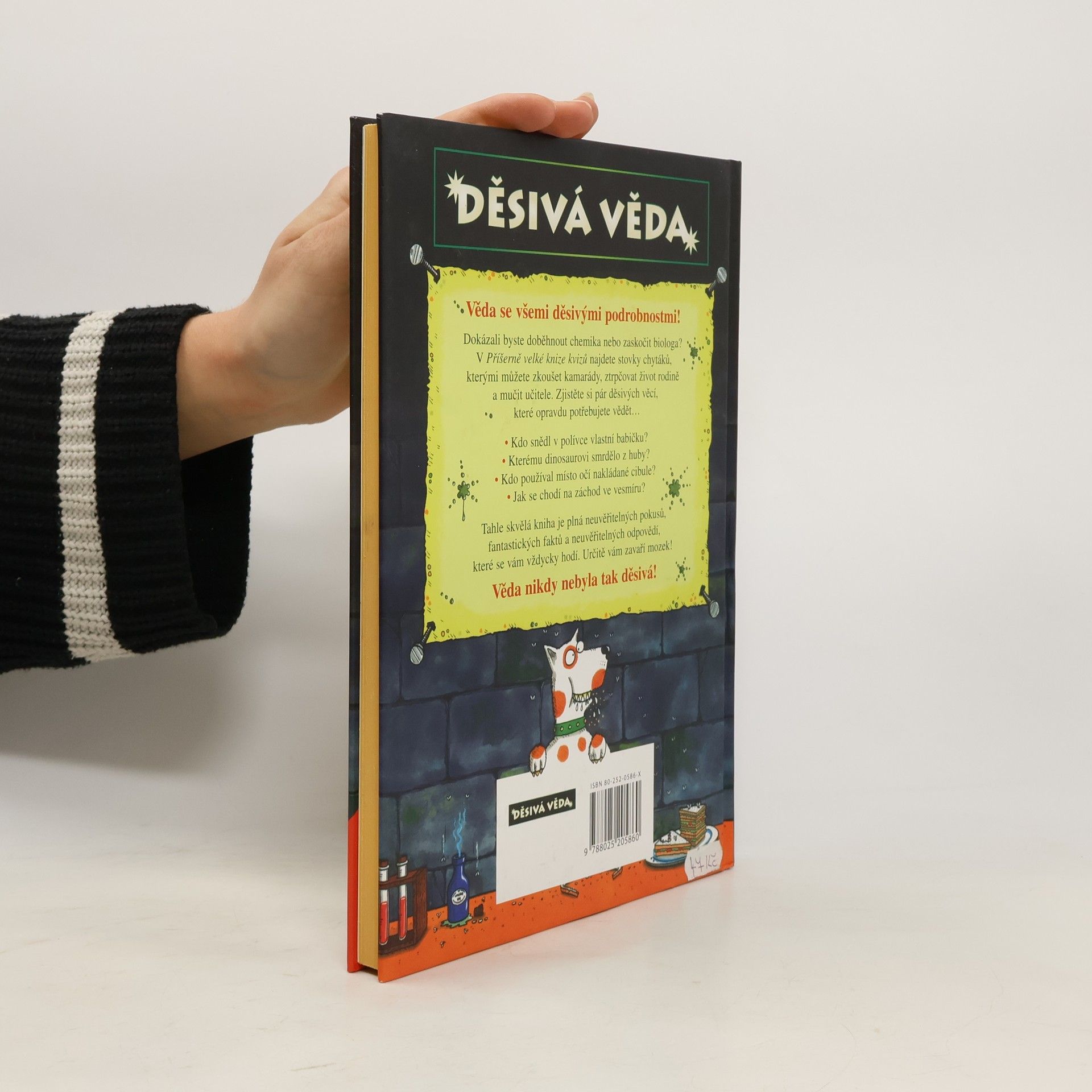 Dokázali byste doběhnout chemika nebo zaskočit biologa? V Příšerně velké knize kvizů najdete stovky chytáků, kterými můžete zkoušet kamarády, ztrpčovat život rodině a mučit učitele. Zjistěte si pár děsivých věcí, které opravdu potřebujete vědět, například kdo snědl v polívce vlastní babičku, jestli dinosaurům páchlo z tlamy, kdo používal místo očí nakládané cibule nebo jak se chodí na záchod ve vesmíru. Tahle skvělá kniha je plná úžasných pokusů, fantastických faktů a neuvěřitelných odpovědí, které se vám vždycky hodí. Určitě vám zavaří mozek! Věda nikdy nebyla tak děsivá!
