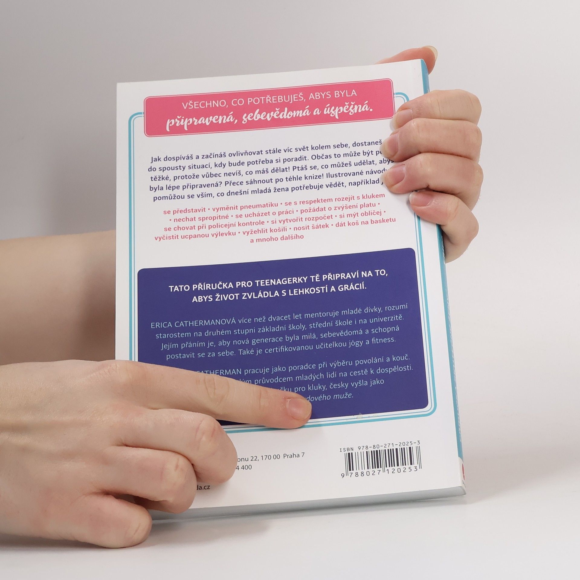 Jak dospíváš a začínáš ovlivňovat stále víc svět kolem sebe, dostaneš se do spousty situací, kdy bude potřeba si poradit. Občas to může být pěkně těžké, protože vůbec nevíš, co máš dělat! Ptáš se, co můžeš udělat, abys byla lépe připravená? Přece sáhnout po téhle knize! Ilustrované návody ti pomůžou se vším, co dnešní mladá žena potřebuje vědět, například jak: se představit • vyměnit pneumatiku • se s respektem rozejít s klukem • nechat spropitné • se ucházet o práci • požádat o zvýšení platu • se chovat při policejní kontrole • si vytvořit rozpočet • si mýt obličej • vyčistit ucpanou výlevku • vyžehlit košili • nosit šátek • dát koš na basketu a mnoho dalšího