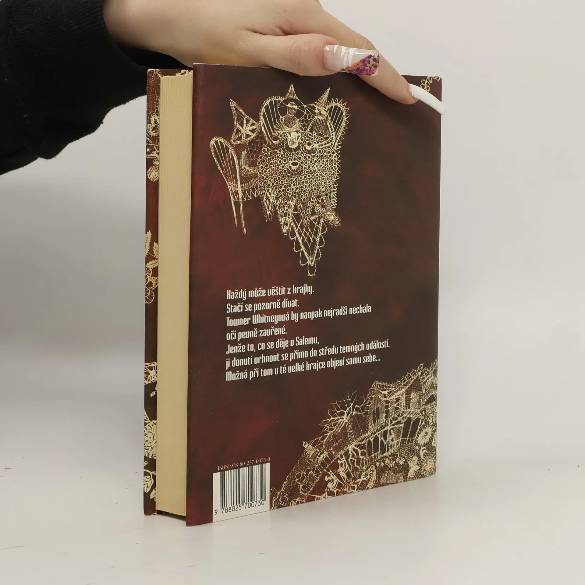 Strhující a překvapivě vypointovaný román o novodobém honu na čarodějnice. Towner Whitneyová se narodila v americkém městě Salem, které neblaze proslulo čarodějnickými procesy v 17. století. Na konci 20. století by se mohlo zdát, že doba slepých vášní a hořících hranic je dávno pryč. Jenže není… Towner je z rodu Whitneyů a ovládá magickou schopnost věštit z krajky. Když se dozví, že zmizela její milovaná prateta Eva, musí překonat sama sebe, vrátit se do Salemu a napřít všechny síly k tomu, aby odhalila, co se vlastně stalo. Jak zjistí ona i čtenáři, tajemství dlí hlouběji, než by kdokoliv čekal, a při jeho odhalování půjde o všechno. Nevšední a dramatický příběh ze současnosti je pro čtenáře stejně uhrančivý, jako je pro ženy z rodu Whitneyů pohled do spletitého vzoru salemské krajky. Autorka románu Brunonia Barryová sklidila se svou prvotinou bouřlivé ovace amerického čtenářského publika.