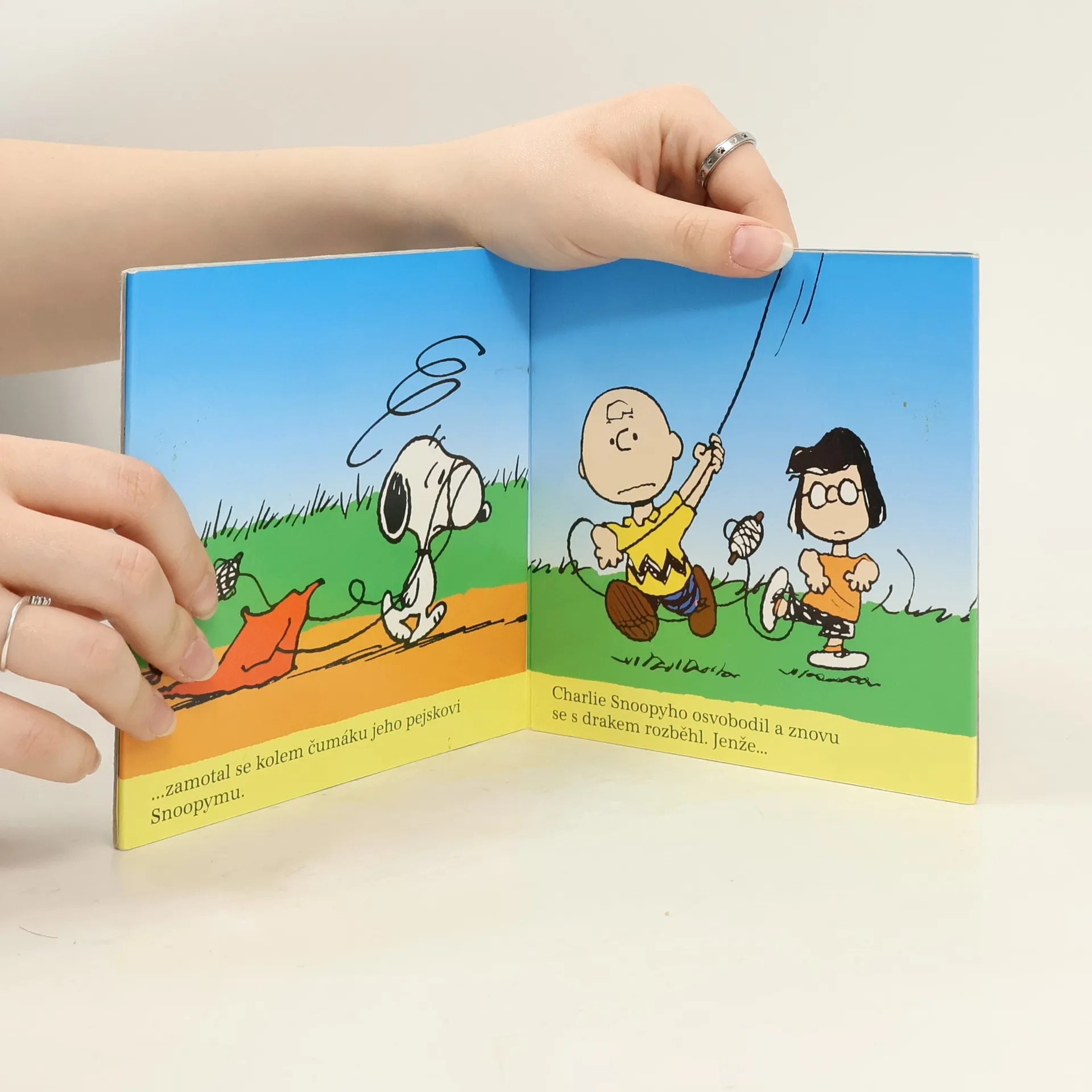 Snoopy je docela neobyčejné štěně, co umí neuvěřitelné kousky a pobaví celou rodinu i malého Charlieho. Jednou Charlie se Snoopym pouští draka a podaří se mu provázkem omotat všechny přihlížející, sebe nevyjímaje. Půvabné leporelo s humorným příběhem s nejoblíbenější postavičkou kreslených filmů.
