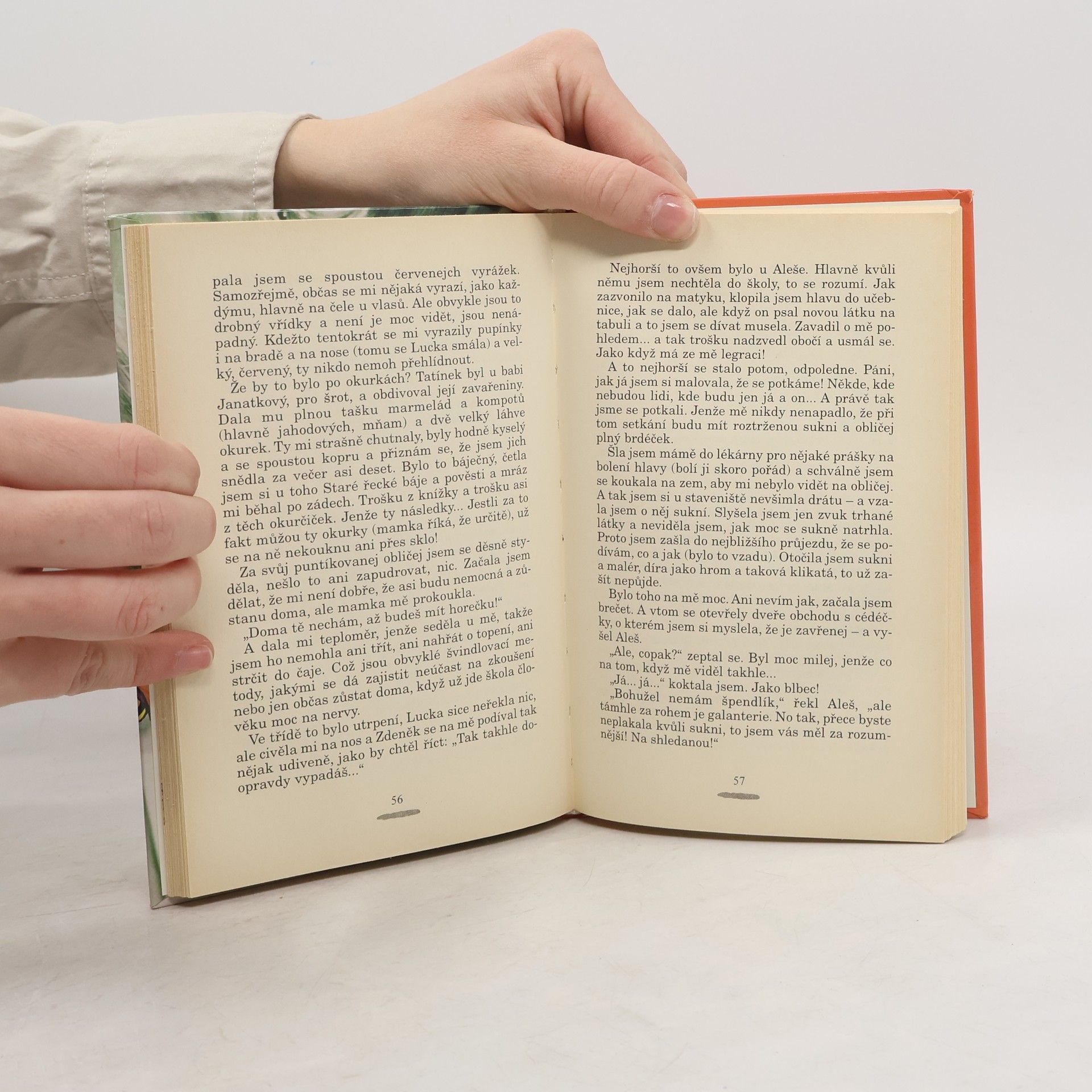 Určitě to znáte: dospělí (a rodiče zejména) spoustě věcí před dveřmi nemluví a ty problémové řeší sami, i když se týkají i jich. Proto "malí" poslouchají podobně jako Anička tajně za dveřmi: jsou přirozeně zvědaví, co a jak se bude dít. Postupně jim ale začíná to tajné vyzvídání vadit... Anně je šestnáct a všechno v jejím životě se rázem změní, když se její rodiče rozhodnou natrvalo odejít z Prahy na venkov. Prázdninová chalupa se jim stane novým, ale drsným domovem a slečna z velkoměsta si zvyká na zimu, bláto, na zvířata, na maloměstské gymnázium i nové spolužáky. Navíc se musí vyrovnat s neslavným rozjezdem tatínkovy podnikatelské firmy i s maminčinými nářky. A také s prvními náznaky lásek... Během jediného dne se z Aničky stane úplně jiný člověk. Už neposlouchá za dveřmi - naučila se rozhodovat sama za sebe a rodiče ji začnou brát jako "velkou".