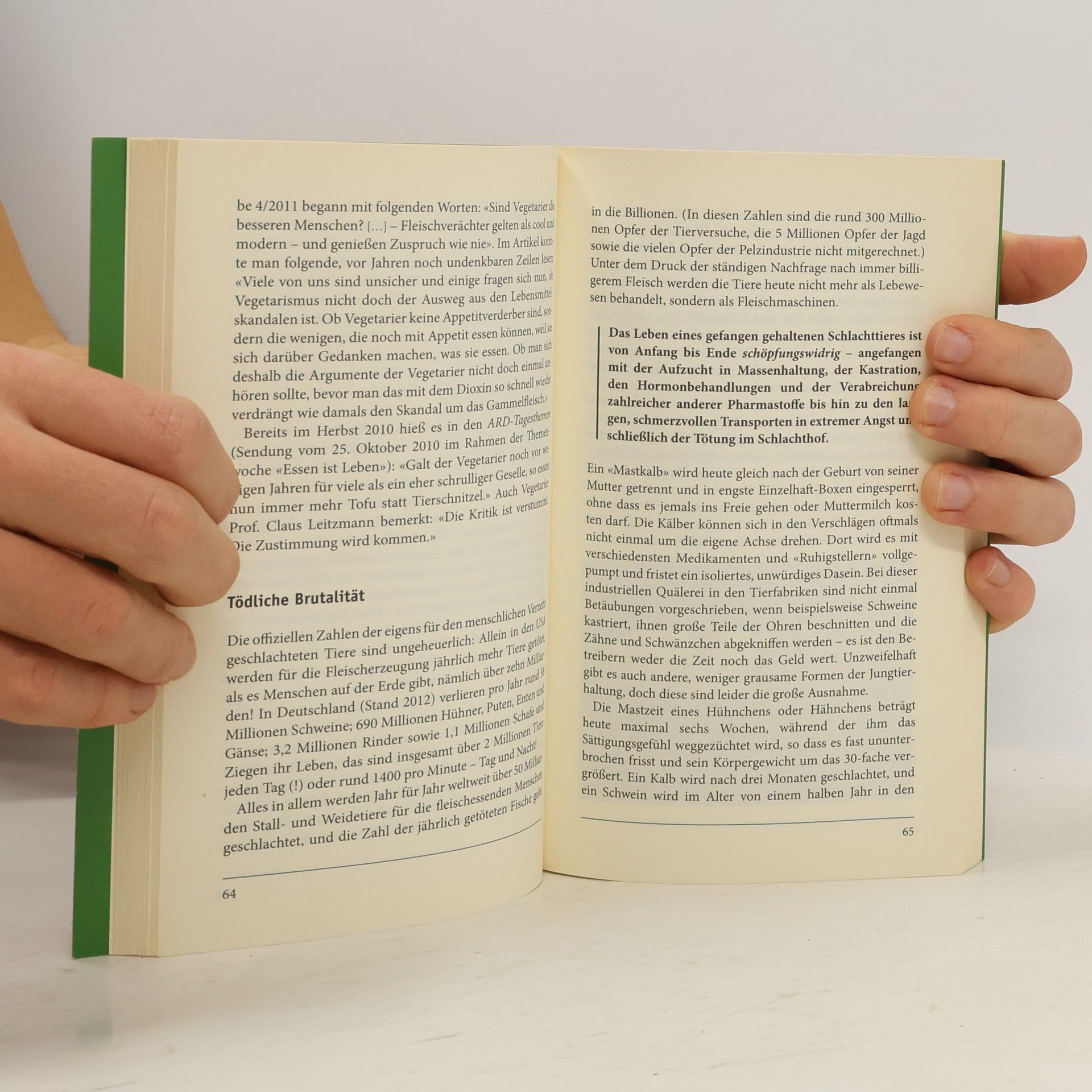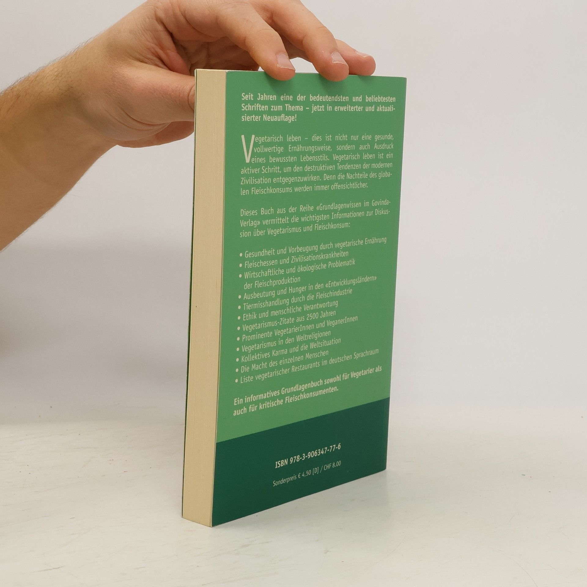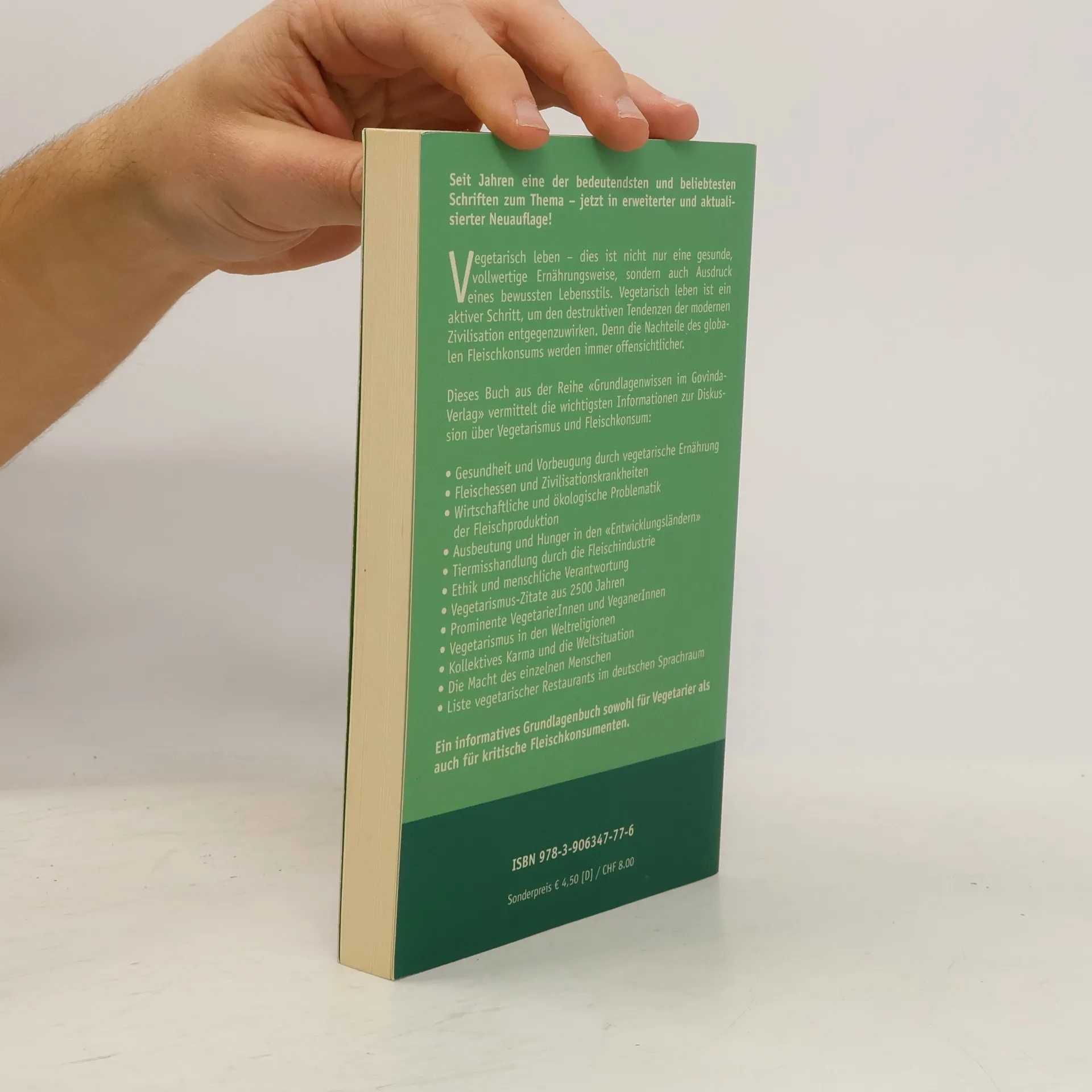 Seit Jahren eine der bedeutendsten und beliebtesten Schriften zum Thema – jetzt in erweiterter und aktualisierter Neuauflage! Vegetarisch leben – dies ist nicht nur eine gesunde, vollwertige Ernährungsweise, sondern auch Ausdruck eines bewußten Lebensstils. Vegetarisch leben ist ein aktiver Schritt, um den destruktiven Tendenzen der modernen Zivilisation entgegenzuwirken. Denn die Nachteile des globalen Fleischkonsums werden immer offensichtlicher. Dieses Buch aus der Taschenbuchreihe 'Grundlagenwissen im Govinda-Verlag' vermittelt die wichtigsten Informationen zur Diskussion über Vegetarismus und Fleischkonsum: Gesundheit und Vorbeugung durch vegetarische Ernährung Fleischessen und Zivilisationskrankheiten Wirtschaftliche und ökologische Problematik der Fleischproduktion Ausbeutung und Hunger in den 'Entwicklungsländern' Tiermißhandlung durch die Fleischindustrie Ethik und menschliche Verantwortung Vegetarismus-Zitate aus 2500 Jahren Prominente VegetarierInnen und VeganerInnen Vegetarismus in den Weltreligionen Kollektives Karma und die Weltsituation Die Macht des einzelnen Menschen Liste vegetarischer Restaurants im deutschen Sprachraum Ein informatives Grundlagenbuch sowohl für Vegetarier als auch für kritische Fleischkonsumenten.