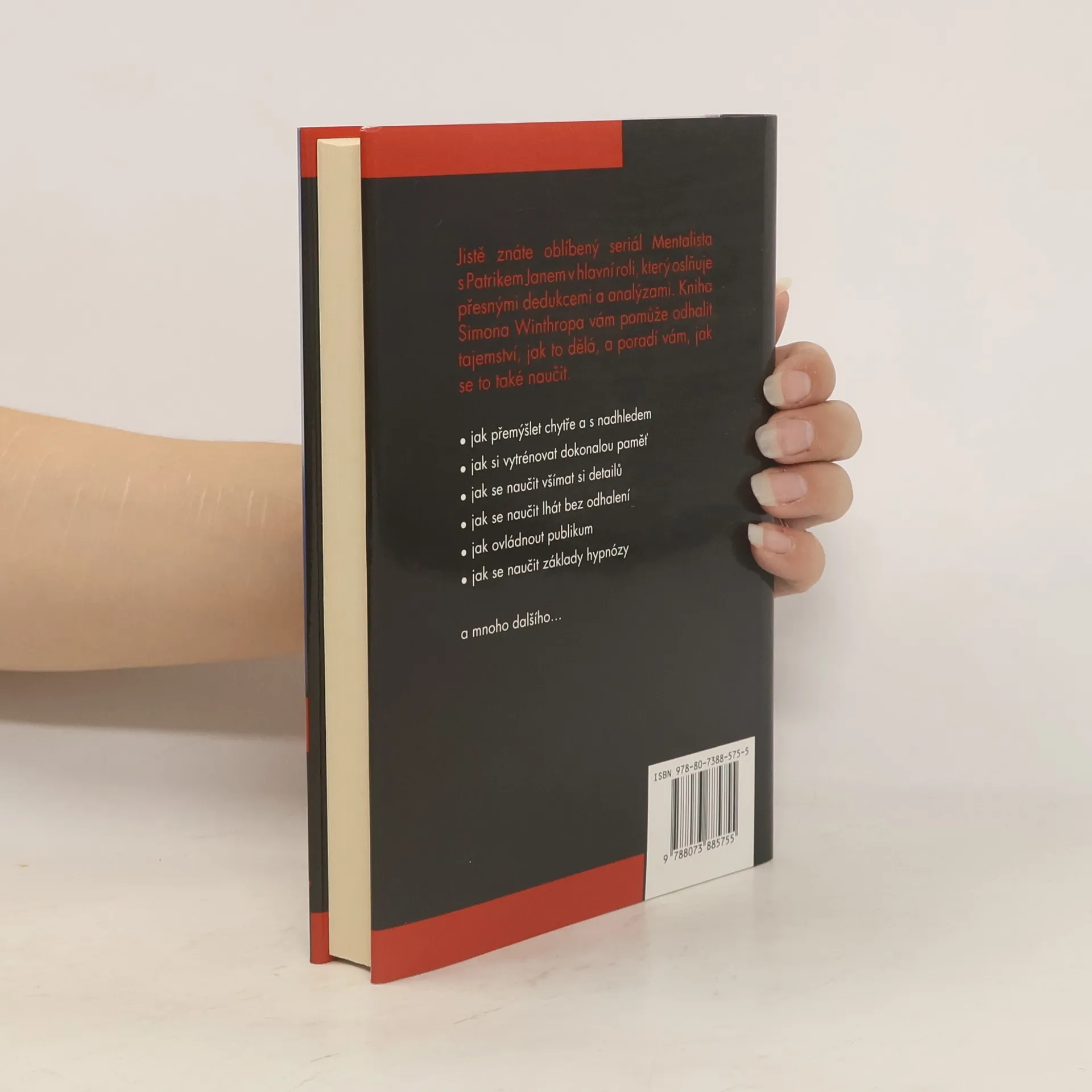 Kniha na motivy úspěšného stejnojmeného seriálu s Patrikem Janem v hlavní roli. Autor knihy Simon Winthrop si klade za cíl čtenáře seznámit s rolí Mentalisty, pochopit, jak pracuje a jaké má zvyky. Naučíte se technikám a metodám, které Mentalista používá. Jak rozumět neverbální komunikaci? Jak funguje meditace? A hypnóza? Jak a při jakých příležitostech lze nové techniky procvičovat? Originální příručka, na jejímž konci budete schopni číst v ostatních takřka jako v otevřené knize. Kniha, která nadchne nejen fanoušky původního seriálu, ale kohokoli, koho láká proniknout do tajů psychologie a lépe se zorientovat v chování lidí.