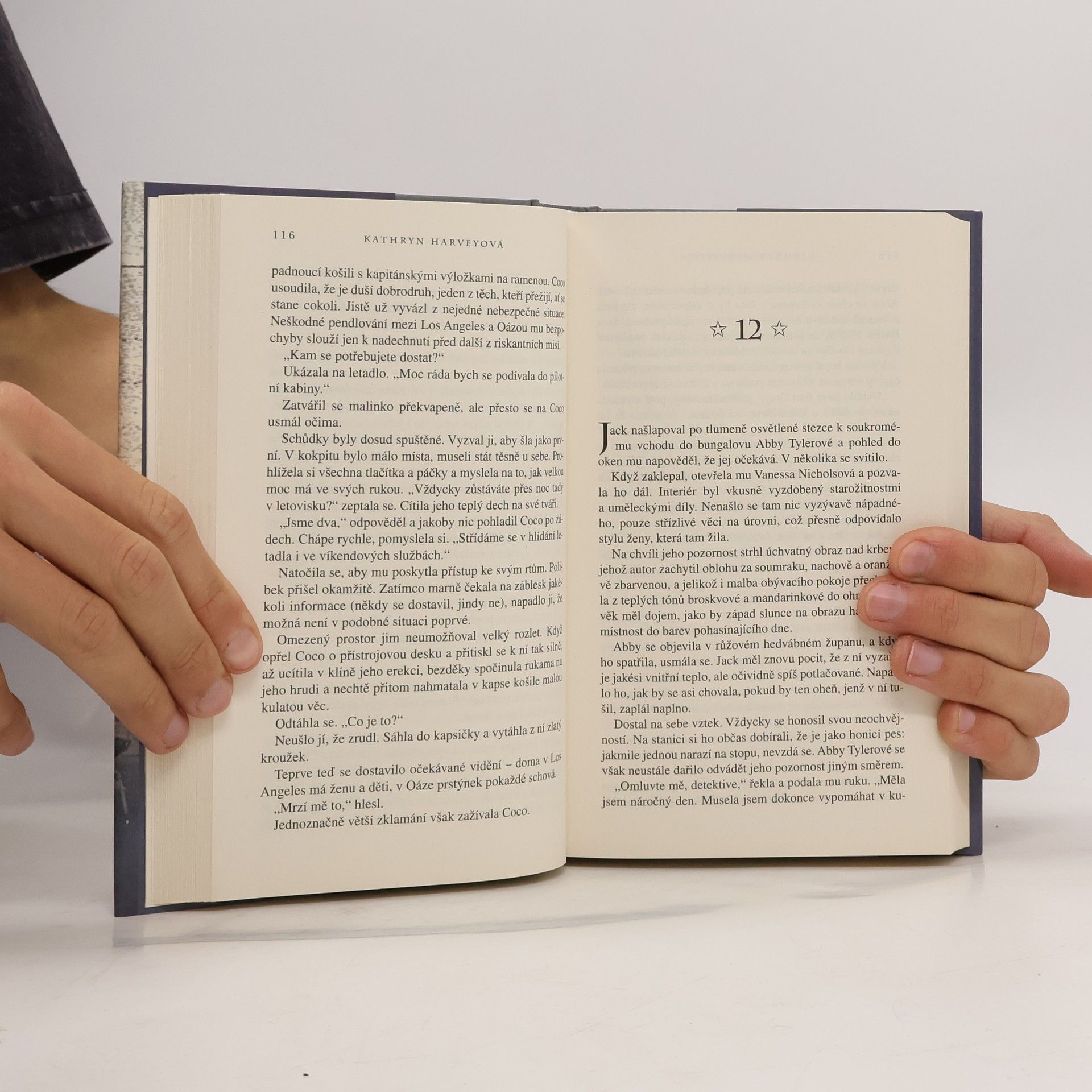 Autorka Barbara Woodová, známá díky románům jako Nespoutané sny a Kruté hvězdy, napsala pod pseudonymem K. Harveyová více než dvacet titulů, které se staly bestsellery a získaly mezinárodní ocenění. Její nejnovější román, Důvěrná setkání, se odehrává v luxusním rekreačním středisku Oáza v kalifornské poušti, kam se lze dostat pouze letadlem. Toto místo, kde je rozkoš prioritou, je domovem tří žen - Coco, Sissy a Ophelia - které se sem dostaly díky neznámé soutěži, o jejíž účasti nemají tušení. Spojuje je tajemný plán hlavní hrdinky, Abby Tylerové, majitelky Oázy, která se snaží najít své dítě, jež jí bylo ukradeno při porodu. Aby se s ním znovu shledala a uzavřela dlouholetou bolest, musí čelit své minulosti. Situace se zkomplikuje s příchodem písečné bouře a najatého vraha, který má své vlastní úmysly. Příběh kombinuje napínavou detektivní zápletku s romantickými a erotickými prvky, které provázejí vývoj vztahů postav. Kathryn Harveyová opět dokazuje svůj talent a schopnost zaujmout čtenáře.