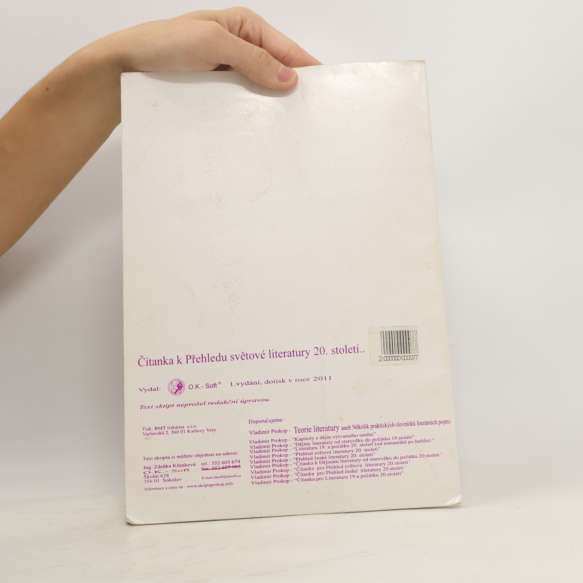 Čítanka k Přehledu světové literatury 20. století je koncipována tak, aby vytvářela logický celek se svou "mateřskou" publikaci. Nejen výběr, ale rovněž i chronologické řazení ukázek jsou determinovány zmíněnými skripty, a to tak, aby bylo vyváženě pokryto celé časové období. Z praktického hlediska by bylo užitečné znát následující skutečnosti: 1. V čítance nenaleznete zbytečně dlouhé texty, jejich rozsah se snaží respektovat časové možnosti v hodině českého jazyka. 2. Otázky a náměty k diskusi, které doprovázejí každý celek, jsou chápány jen jako pomoc studentům (popřípadě i učitelům), v žádném případě nechtějí suplovat vlastní aktivitu vyučujícího. 3. Není třeba si hrát na vševědoucího, a tak je počítáno s tím, že mnohé úkoly budou řešeny s pomocí odborných publikací (zejména slovníkového charakteru). Už jen vlastní schopnost orientovat se v sekundární literatuře je nezaplatitelnou předností. Časově nenáročné texty, obsahy všech uvedených prozaických děl, nespočet úkolů a námětů k diskusi.