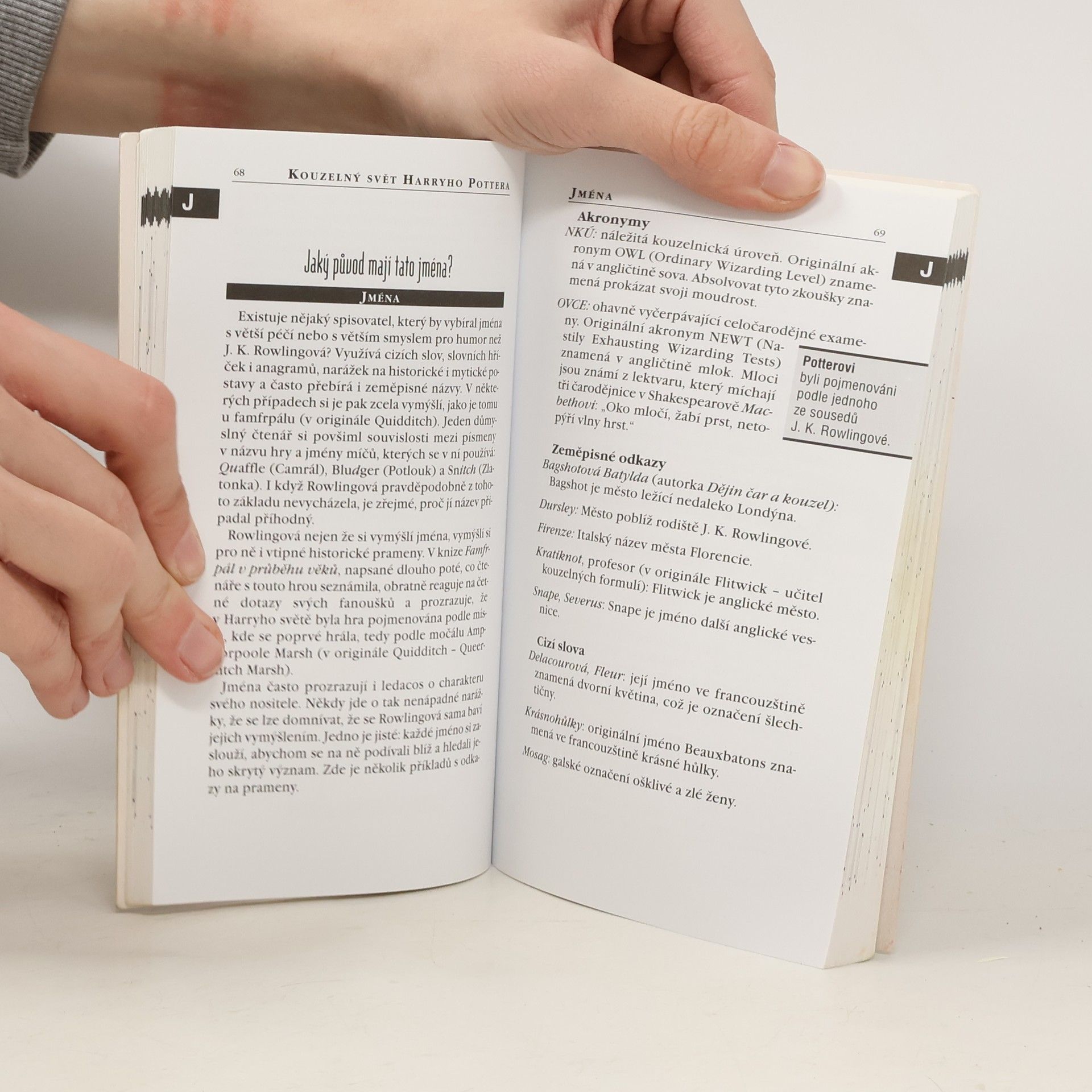 V knížkách o Harry Potterovi J. K. Rowlingové je ukryta celá řada hravých narážek na historii, legendy a literaturu. Tato knížka se pokouší autorčiny narážky dešifrovat, odhaluje obratně skryté významy. S její pomocí se čtenář seznámí s významem jmen některých hrdinů, původem a výskytem nejrůznějších fantastických zvířat, odkryje i podobnost některých Harryho dobrodružství s jinými legendami a mýty. Dozví se např. od jakého slova je odvozen název koleje Nebelvír, zda čarodějnice odjakživa létají na košťatech nebo proč se profesorka McConagallová objevuje v kočičí podobě. V knížce nechybí ani bibliografie a internetové zdroje.... celý text