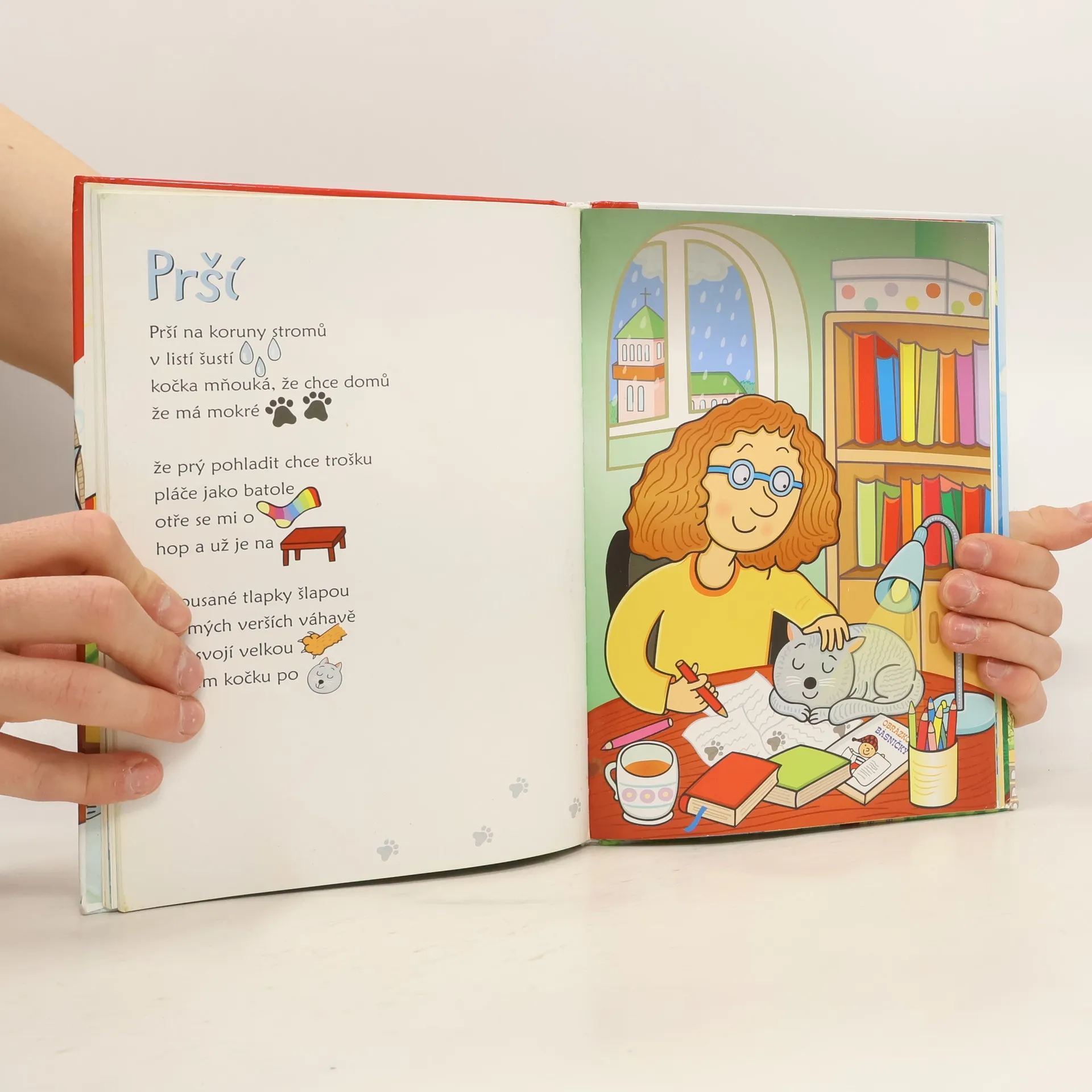 Pro chytré hlavičky od 3 do 8 let. Pro chytré hlavičky (od 3 do 8 let) a jejich babičky, dědy, táty, mámy (kteří už čtou sami) Veselá knížka probouzí v dětech jazykový cit a chuť číst. Rozvíjí slovní zásobu a přináší potěšení ze společného čtení. V básničkách děti rády uhodnou slovo, které se rýmuje. Milují také obrázkové texty, kde i předškolák sám něco přečte. V této knížce najdou obojí místo rýmů jsou totiž na konci veršů obrázky. V mozku se pak dějí věci! Zároveň je zapojeno centrum řeči, centrum vizuálního vnímání, vnímání rytmu i logické myšlení. Dochází k propojení hemisfér a účinnému rozvoji intelektu. Dítě ovšem nic takového netuší, má jen radost, že mu to tak pěkně jde. Půvabné ilustrace i text jsou plné humoru a poetiky, která pohladí duši dětí i dospělých. Těm velkým připomenou to, co malí ještě vědí: že obyčejné věci jsou vlastně velmi neobyčejné. Knížka je vhodná nejen domů, ale i do školky a do 1. třídy.