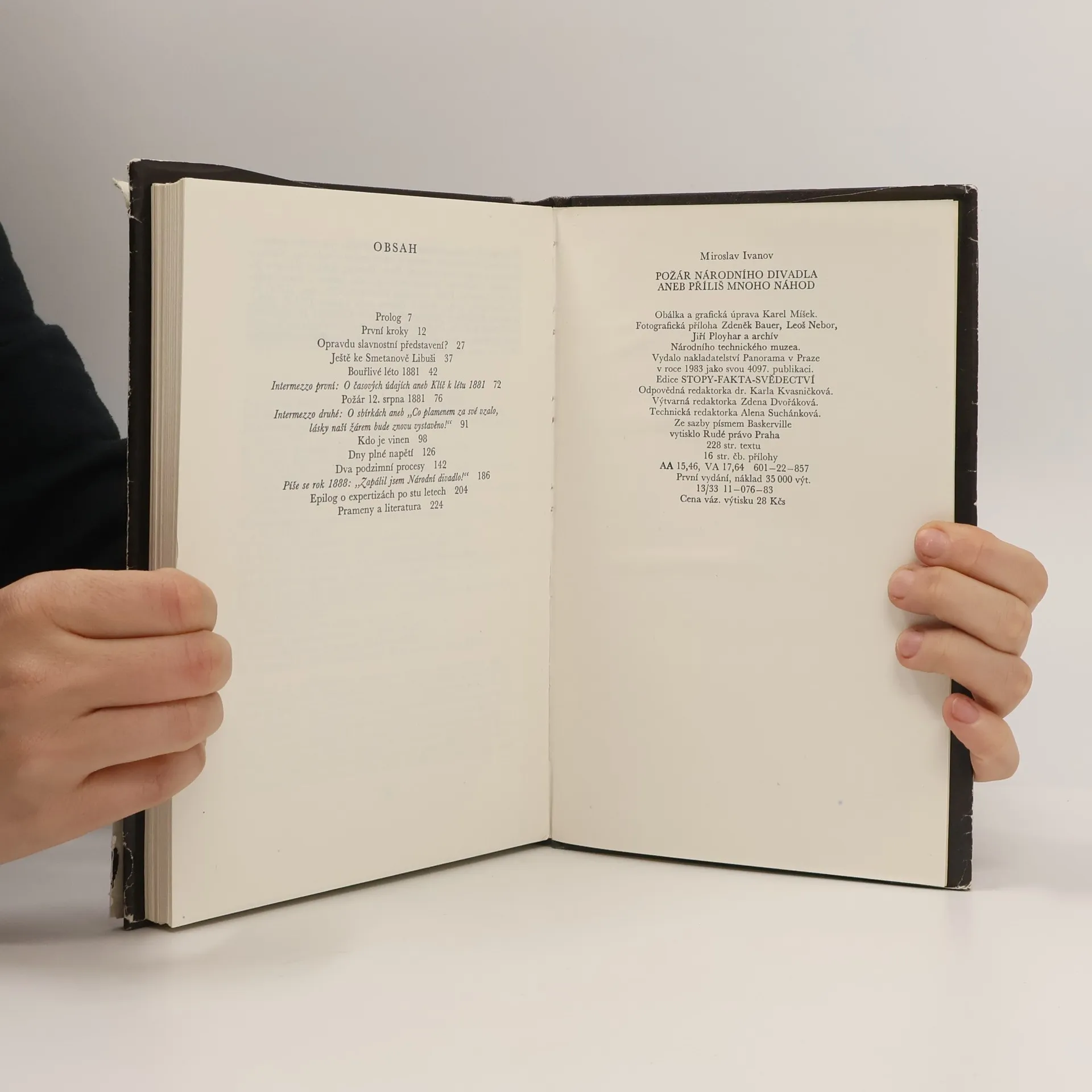 Sto let nikoho nenapadlo pátrat znova po příčinách vzniku požáru sotva dostavěného Národního divadla, revokovat tehdejší situaci, přezkoumat prapodivné vyšetřování, soudní procesy a závěry. Miroslav Ivanov se do toho pustil, překročil bariéru času. Získal sotva dostupné prameny, rekonstruoval události, oživil aktéry a jejich charaktery, našel atmosféru doby. Ze zorného úhlu dneška a s pomocí současné techniky prověřoval a hledal důkaz pravdy...