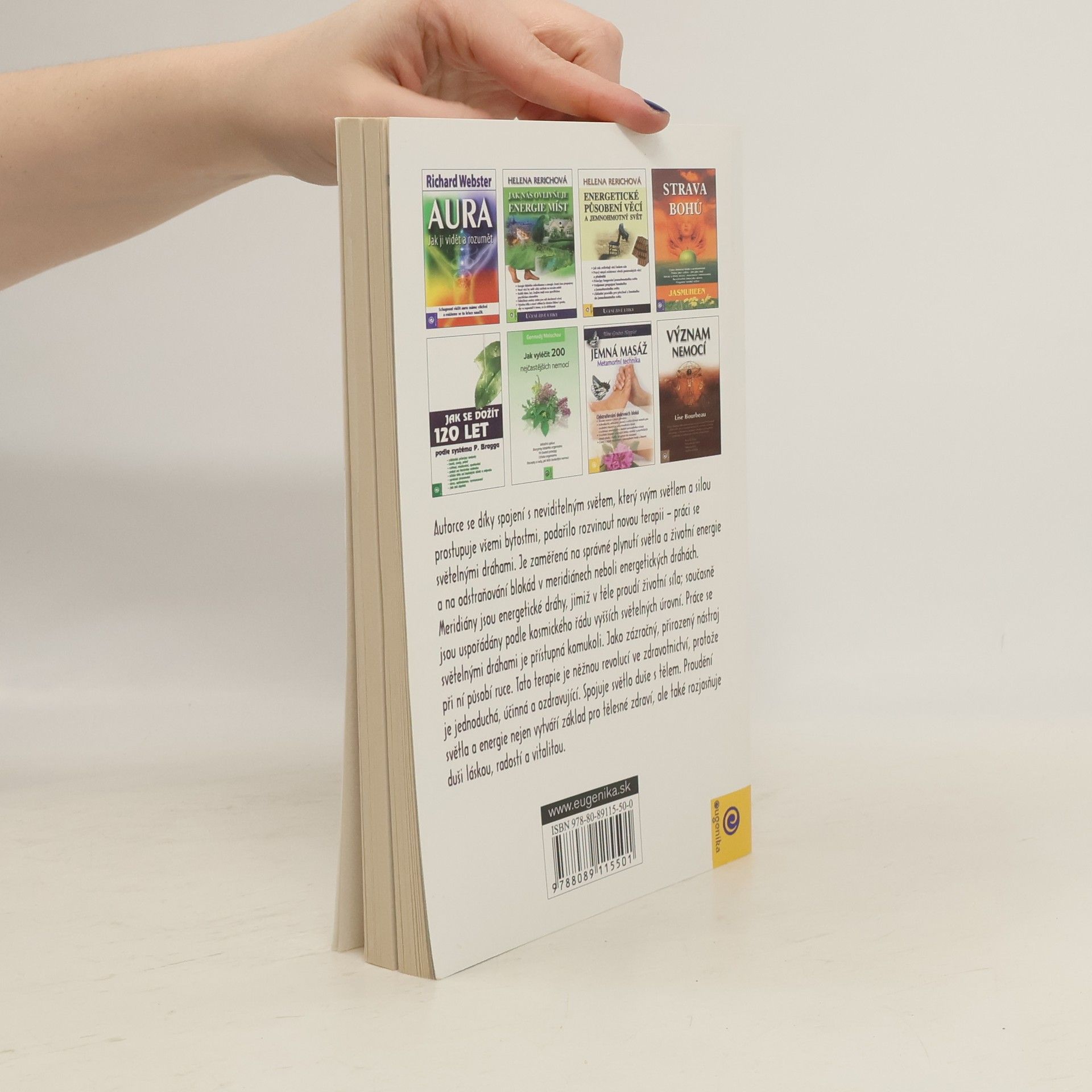 Léčení prostřednictvím světelných drah umožňuje díky jemným dotykům dlaní na těle volné proudění energií. Prostřednictvím pouhých čtrnácti pozic rukou je tak možné povzbudit proudění univerzální životní energie ve všech meridiánech, a tím i ve všech partiích těla. Toto volnéproudění univerzální energie ve světelných drahách, které se táhnou tělem a zásobují je kosmickou energií, podporuje samoléčení, zmírňuje zdravotní potíže, podporuje duchovní rozvoj a zvyšuje mediální senzibilitu. Kniha přináší informace, jak tuto terapii, při které se nepoužívají žádné jehly ani jiné pomůcky, používat pro sebe i pro druhé