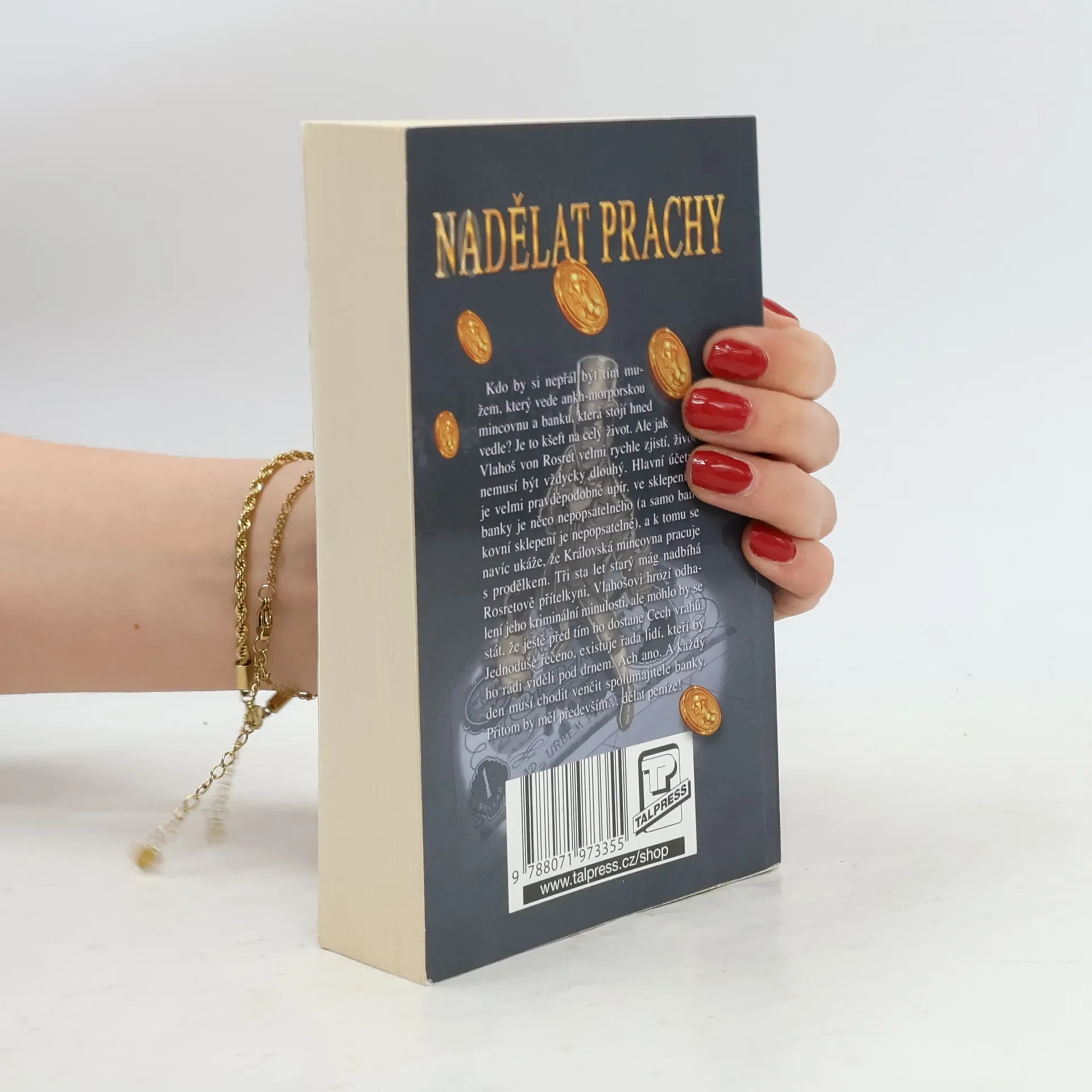 Kdo by si nepřál být tím mužem, který vede ankh-morporskou mincovnu a banku, která stojí hned vedle? Je to kšeft na celý život. Ale jak Vlahoš von Rosret velmi rychle zjistí, život nemusí být vždycky dlouhý. Hlavní účetní je velmi pravděpodobně upír, ve sklepeních banky je něco nepopsatelného (a samo bankovní sklepení je nepopsatelné), a k tomu navíc se ukáže, že Královská mincovna pracuje s prodělkem. Tři sta let starý mág nadbíhá Rosretově přítelkyni, Vlahošovi hrozí odhalení jeho kriminální minulosti, ale mohlo by se stát, že ještě před tím ho dostane Cech vrahů. Jednoduše řečeno, existuje řada lidí, kteří by ho rádi viděli pod drnem. Ach ano. A každý den musí chodit venčit spolumajitele banky. Přitom by měl především... dělat peníze! Úžasná Zeměplocha, kniha 32., přeložil Jan Kantůrek.