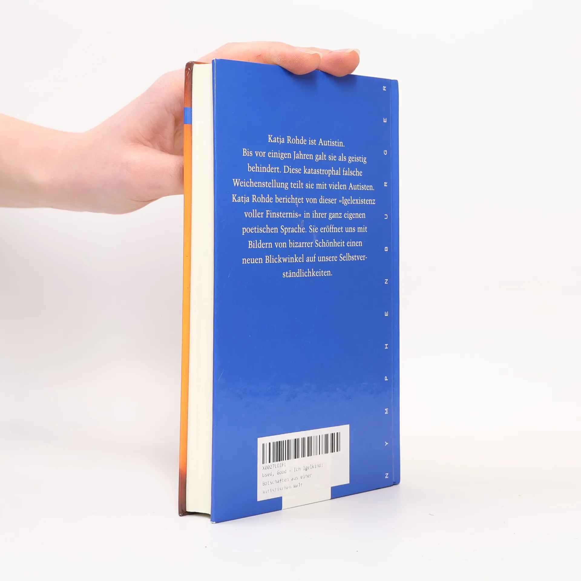 Katja Rohde ist Autistin. Sie ist heute achtundzwanzig Jahre alt. Bis vor 5 Jahren galt sie als geistig behindert. Diese katastrophal falsche Weichenstellung teilt sie mit vielen Autisten. Katja Rohde berichtet von dieser "Igelexistenz voller Finsternis" in Bildern von bizarrer Schönheit und eröffnet uns damit einen neuen Blickwinkel auf unsere Selbstverständlichkeiten. Die gestützte Kommunikation (FC), bei der zunächst die Hand, inzwischen nur noch der Unterarm gestützt wird, ist für Katja Rohde die einzige Möglichkeit, sich mitzuteilen. In ihrer ganz eigenen poetisch-bildhaften Sprache berichtet Katja Rohde von ihrer autistischen Welt, ihren Empfindungen, ihren Qualen und ihren Hoffnungen: "Champagnergrund war endlich gegeben, reines Freudenempfinden möglich. Ich freue mich riesig, über des dunklen Himmels Runzeln glänzt ohnegleichen ein Lüftchen provenzalischer Bläue. In meiner Seele herrschen nicht mehr Angst und Hilflosigkeit, sondern Dankbarkeit und Zuversicht. Unintelligenz wird mir bald nicht mehr nachgesagt werden können." Im ersten Teil des Buchs beschreibt Ulla Rohde ihre Empfindungen als Mutter, ihr oft sehr schwieriges Leben mit Katja und den spannenden Prozess und die Freuden, die das neue Kennenlernen bietet.