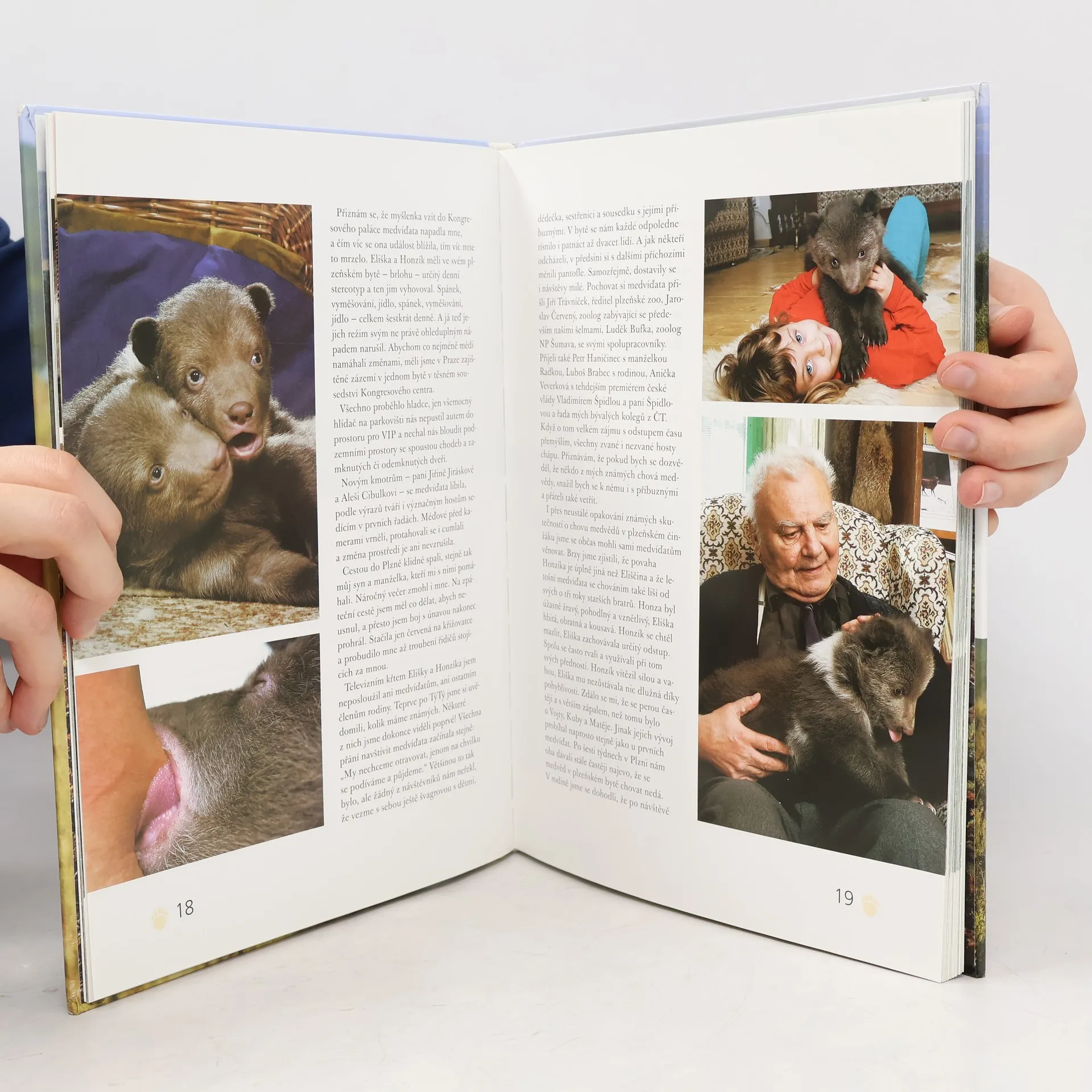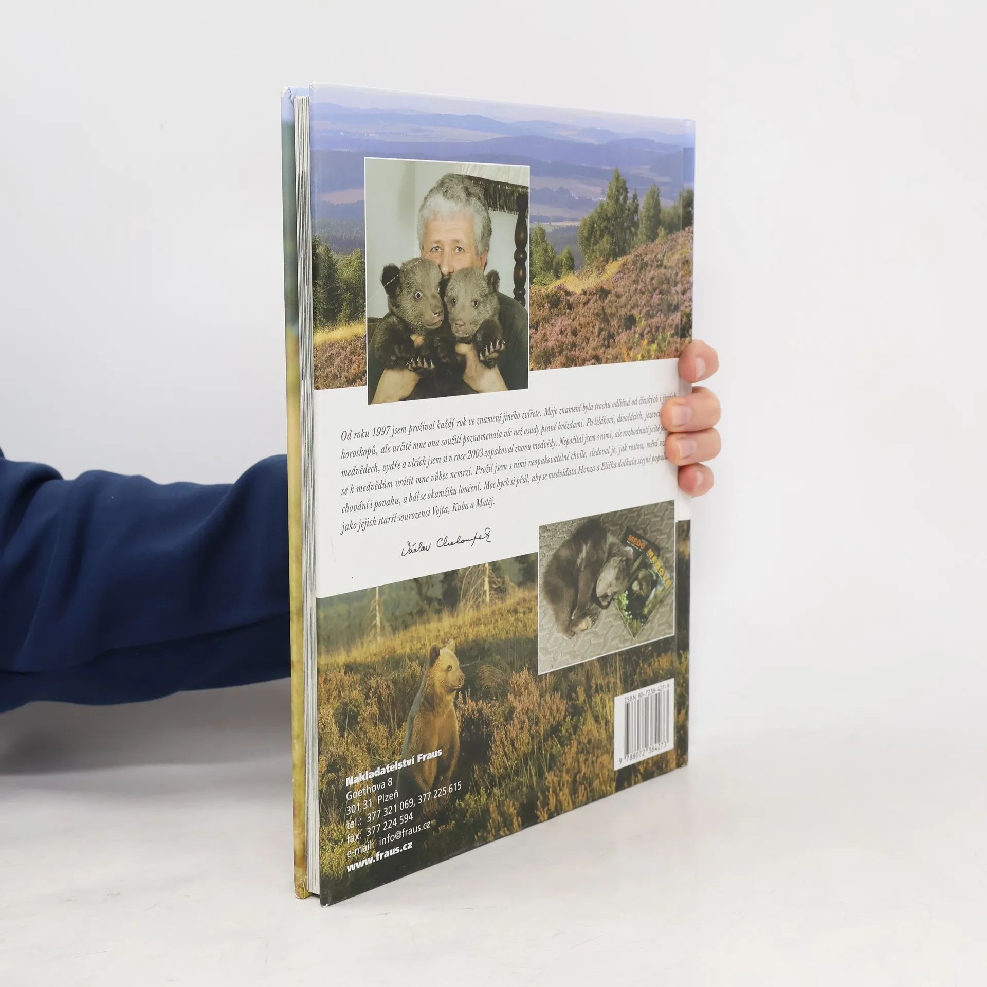 Ve své nové knize se Václav Chaloupek věnuje opět medvíďatům, tentokrát Honzíkovi a Elišce. Ale nejen jim. Také všem lidem, kteří o ně s láskou pečovali a sledovali, jak se méďové vyvíjejí, a díky nimž mohly vzniknout televizní večerníček a tato kniha. Medvíďata i lidé vás postupně seznámí s krásami a zajímavostmi Šumavy, Českého krasu, Křivoklátska, Blanského lesa, Beskyd, Českého středohoří, Českého Švýcarska a Třeboňska. Zvláštní pozornost je zaměřena na Expedici Medvědí Brdy 2003. Kromě toho se dozvíte, jak probíhalo natáčení a fotografování, jaká dobrodružství všichni zúčastnění zažili. A samozřejmě i v této publikaci je text doprovázen značným množstvím překrásných fotografií.