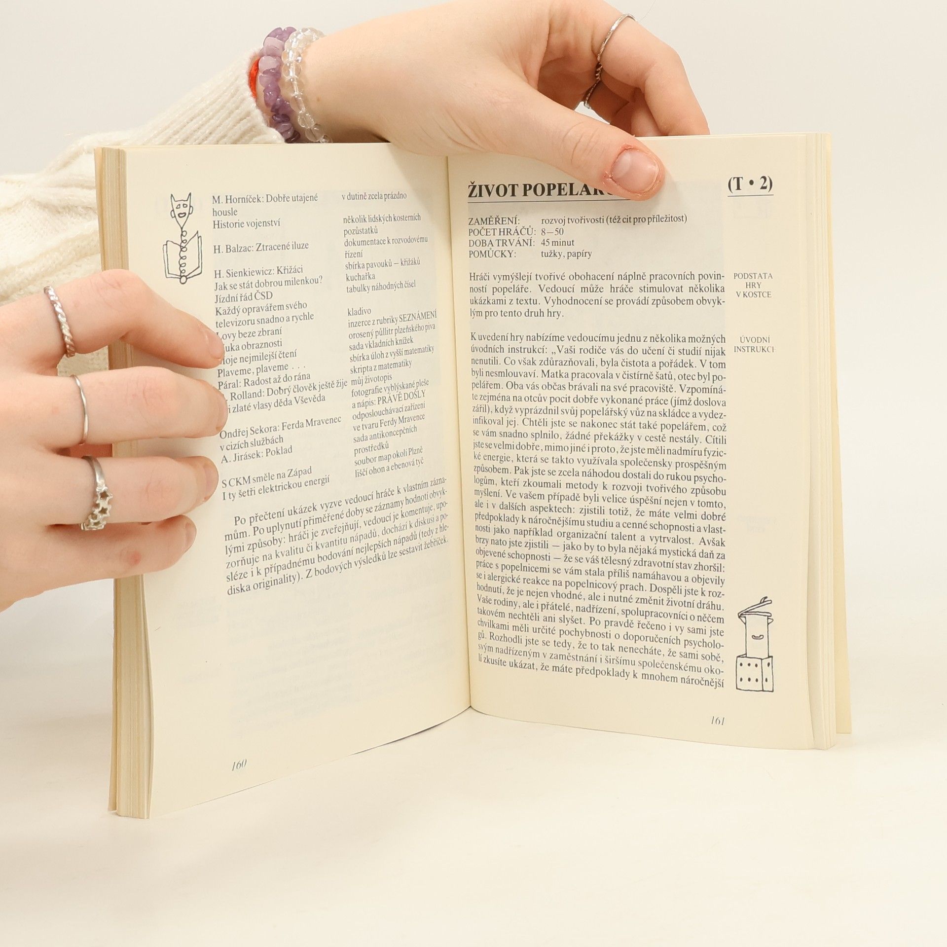 Kniha je souborem dvou tuctů společenských her. Podle svého zaměření jsou rozděleny do pěti skupin. Každá hra je pro rychlou orientaci opatřena kódem a v jejím záhlaví je uveden její stručný obsah s určením zaměření, optimálního počtu hráčů, potřebnými pomůckami a přibližnou dobou trvání.