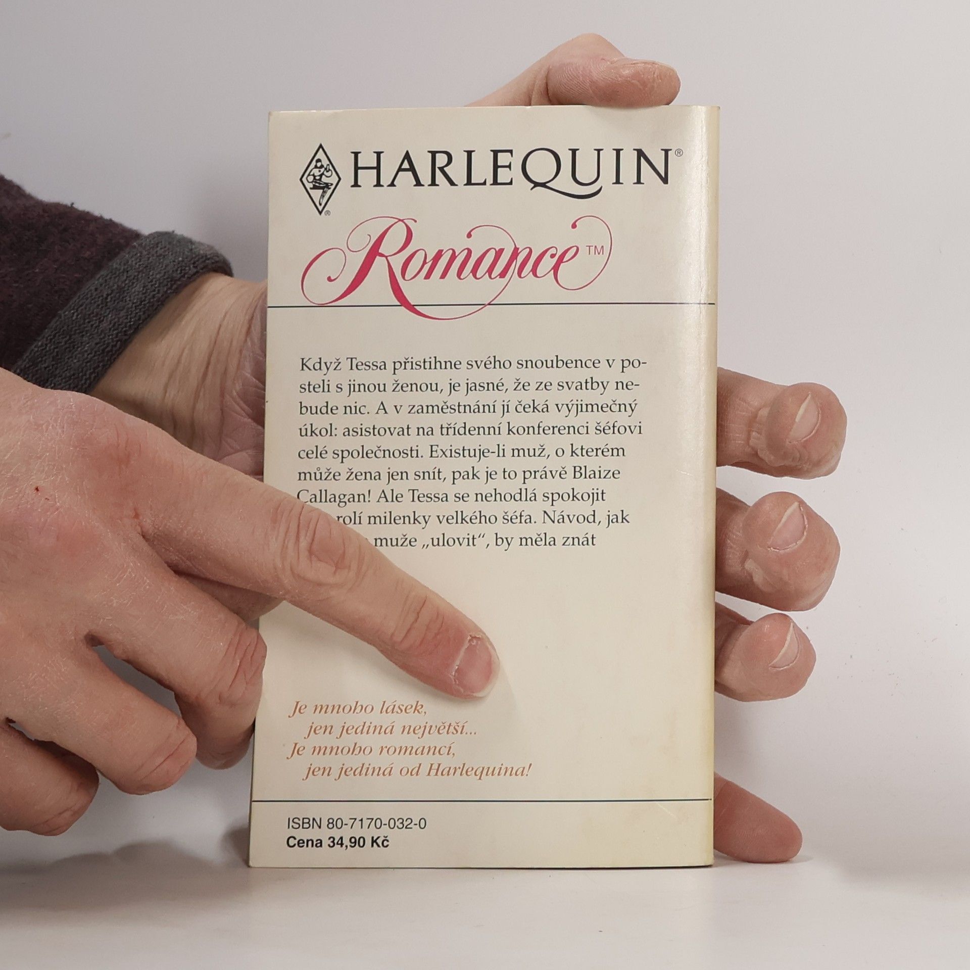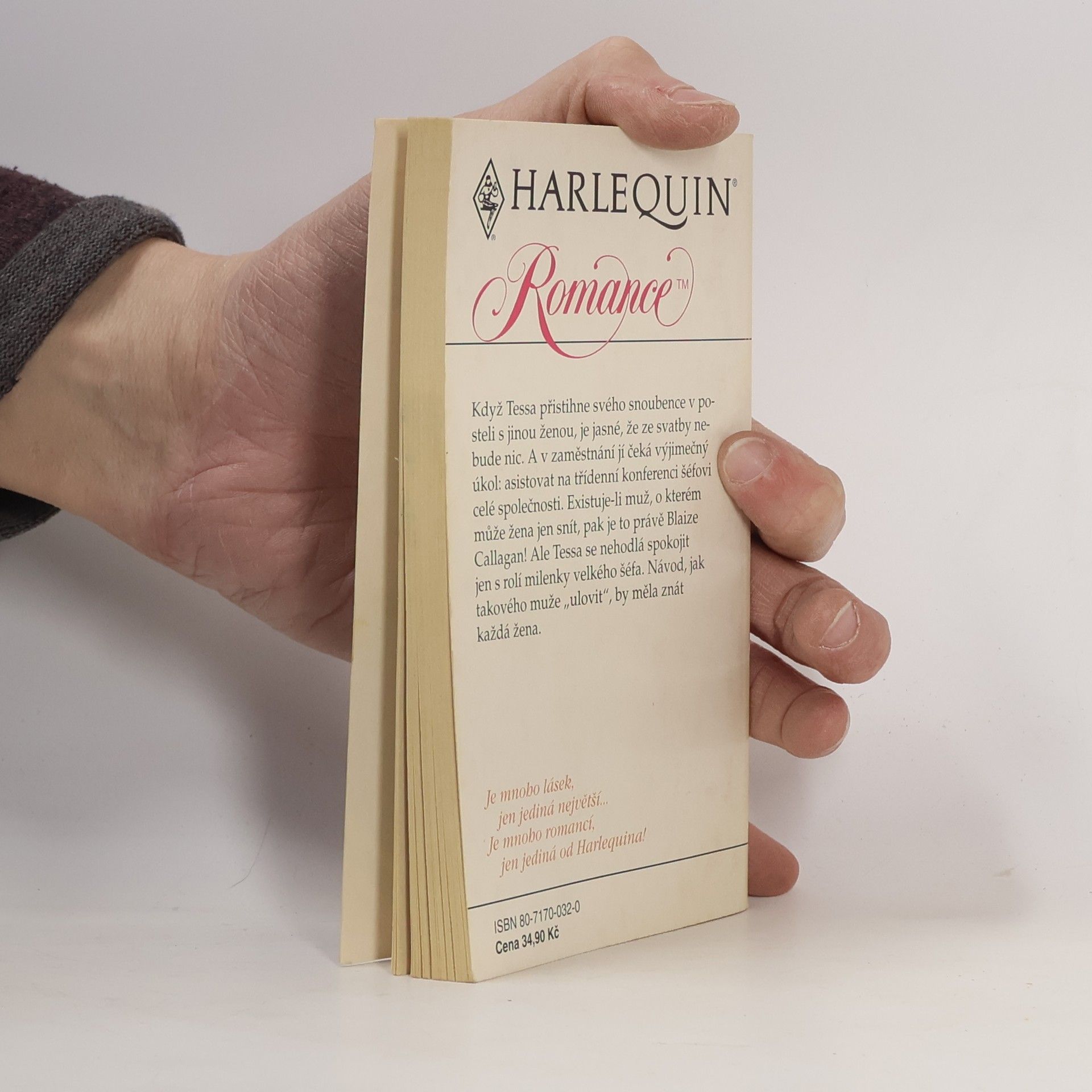 Když Tessa přistihne svého snoubence v posteli s jinou ženou, je jasné, že ze svatby nebude nic. A v zaměstnání ji čeká výjimečný úkol: asistovat na třídenní konferenci šéfovi celé společnosti. Existuje-li muž, o kterém může žena jen snít, pak je to právě Blaize Callagan! Ale tessa se nehodlá spokojit jen s rolí milenky velkého šéfa. Návod, jak takového muže "ulovit", by měla znát každá žena.