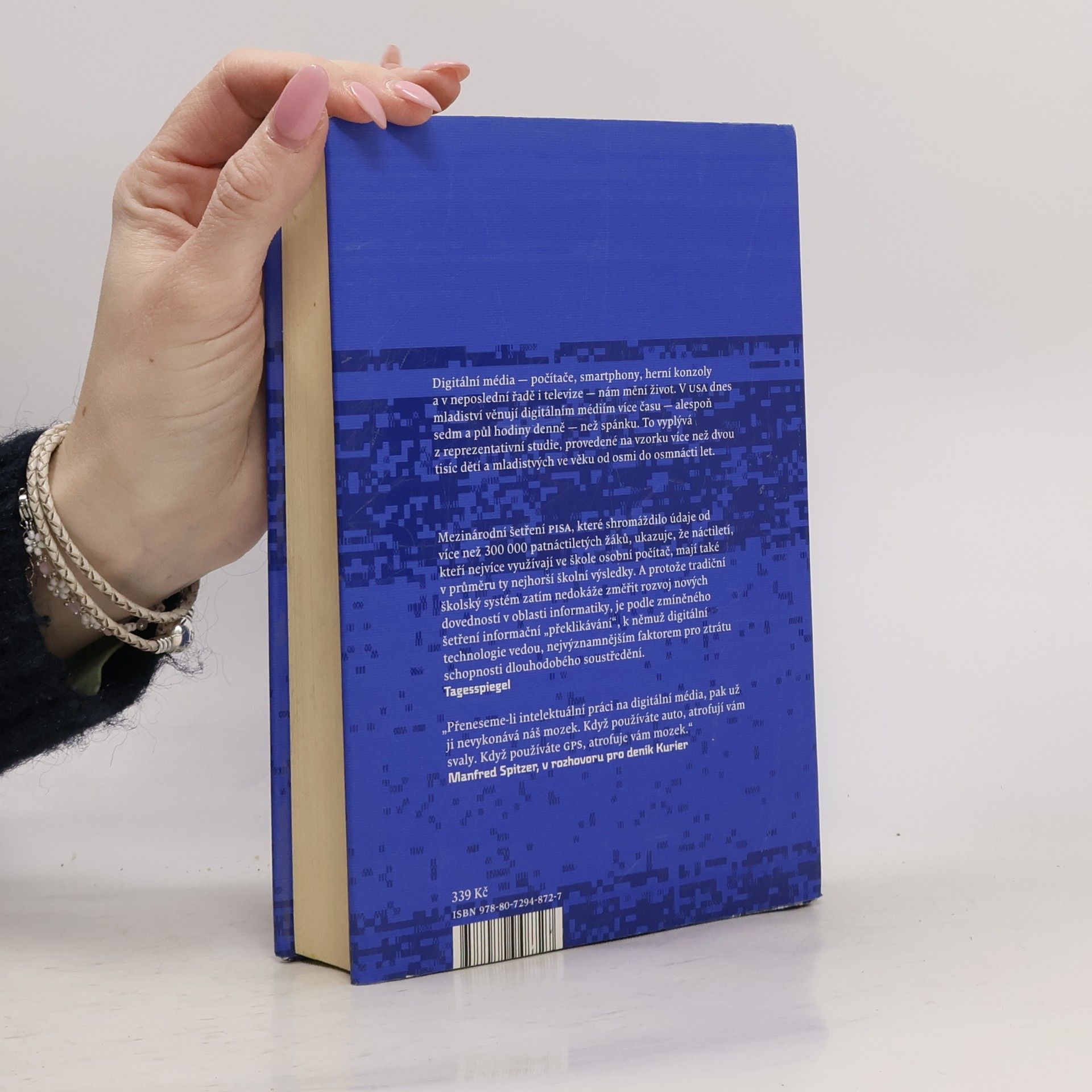Jak připravujeme sami sebe a naše děti o rozum. Digitální média nás zbavují nutnosti vykonávat duševní práci. To, co jsme dřív prováděli jednoduše pomocí rozumu, nyní obstarávají počítače, smartphony, organizéry a navigace. To s sebou nese nezměrné nebezpečí, říká neurovědec Manfred Spitzer. Výsledky výzkumu, které zmiňuje, jsou alarmující. Na digitálních médiích vzniká závislost. V dlouhodobém horizontu poškozují tělo a především mysl. Jakmile přestaneme vyvíjet duševní úsilí, ochabuje nám paměť. Nervové spoje odumírají, ty nové nepřežijí, protože jich není třeba. U dětí a mladistvých vinou digitálních médií dramaticky klesá schopnost učení a výsledkem jsou poruchy pozornosti a čtení, úzkost a otupělost, poruchy spánku a deprese, nadváha, sklony k násilí a úpadek společnosti. Spitzer ukazuje obavy, jež tento vývoj vzbuzuje, a vybízí k omezení konzumního způsobu života, především u dětí, abychom zabránili digitální demenci. V Německu i anglosaském světě vzbudila kniha mimořádný ohlas jak mezi rodiči a pedagogy, tak i mezi odbornou veřejností, byť reakce byly často rozporuplné. Prodalo se jí přes 200 000 výtisku, několik měsíců se udržela na první příčce bestselleru týdeníku Spiegel a práva na vydání byla prodána zatím do devíti zemí.