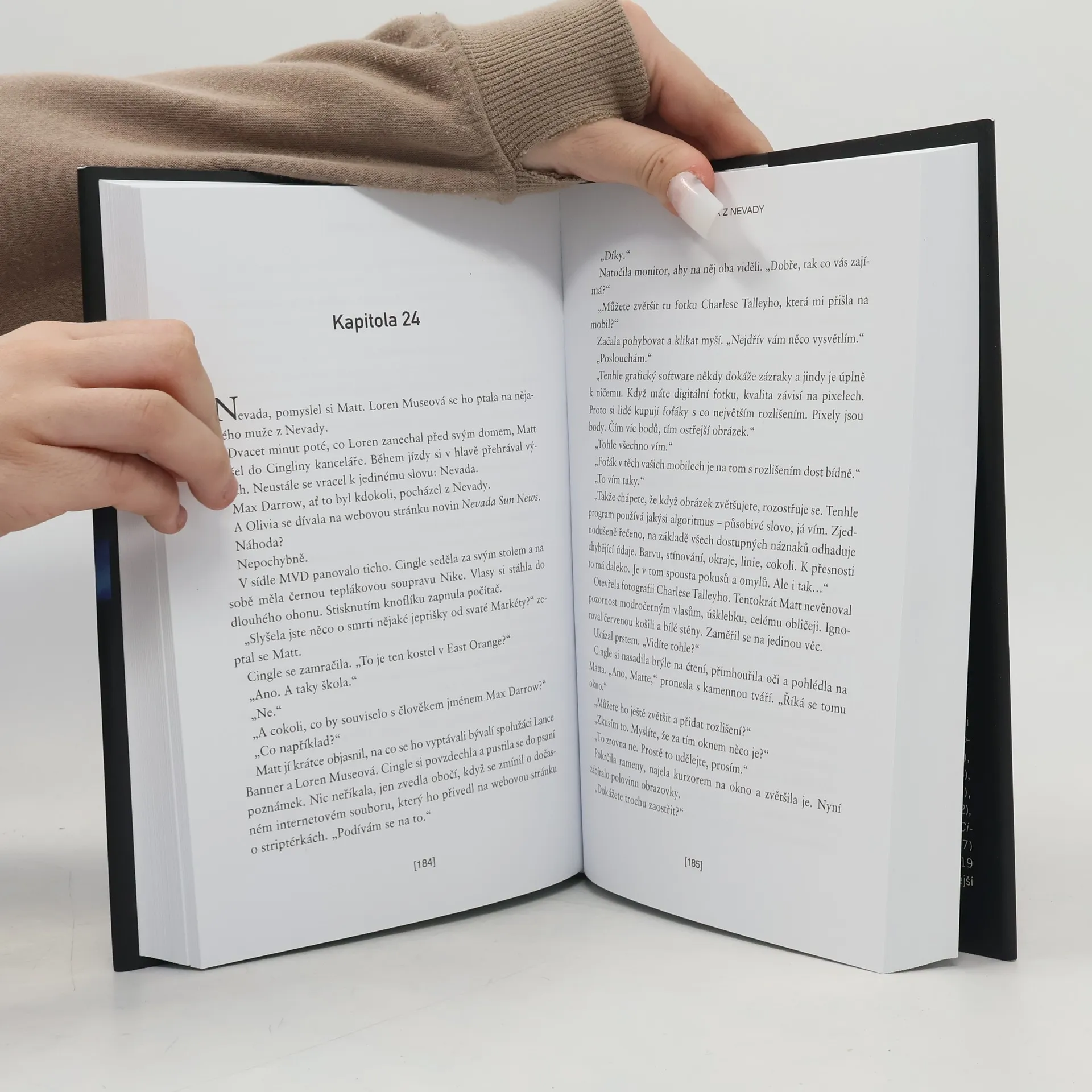 Matt Hunter studoval vysokou školu a měl před sebou skvělou budoucnost. Ale pak se jedné noci připletl do absurdní rvačky a nešťastnou náhodou zabil jiného studenta. Ono osudové klopýtnutí odnáší Mattova rodina i on sám – stráví čtyři roky ve vězení, a ani potom se nezbaví výčitek svědomí vůči mrtvému. Nevěří, že by ještě někdy mohl být šťastný, ale štěstí k němu v podobě jeho dávné lásky Olivie nakonec přijde samo. Matt si krásnou Olivii vezme a čekají spolu dítě. Těhotná žena odjede na jakési školení a Mattovi přijde na mobil obrázek zachycující jeho manželku v hotelovém pokoji s cizím mužem. Zkoušenému Hunterovi se znovu hroutí svět, ale záhy zjišťuje, že to, co se stalo, je složitější, než se zdá, a začíná na vlastní pěst rozkrývat tajemství své vlastní ženy… Mrtvá z Nevady není jen výborně vymyšlená detektivka, ale lze ji zároveň považovat za skvěle napsaný psychologický thriller, který čtenáře spolehlivě udrží v napětí až do posledních stránek. Autorovy zápletky nepřestávají překvapovat, dialogy nešustí papírem a nezdržují, popisy jsou strohé a přesné. A nechybějí ani účinně dávkované porce ironie a sarkasmu – v tom, jak dokáže dramatické vyprávění odlehčit, je dnes Harlan Coben mezi autory žánru stěží překonatelný.