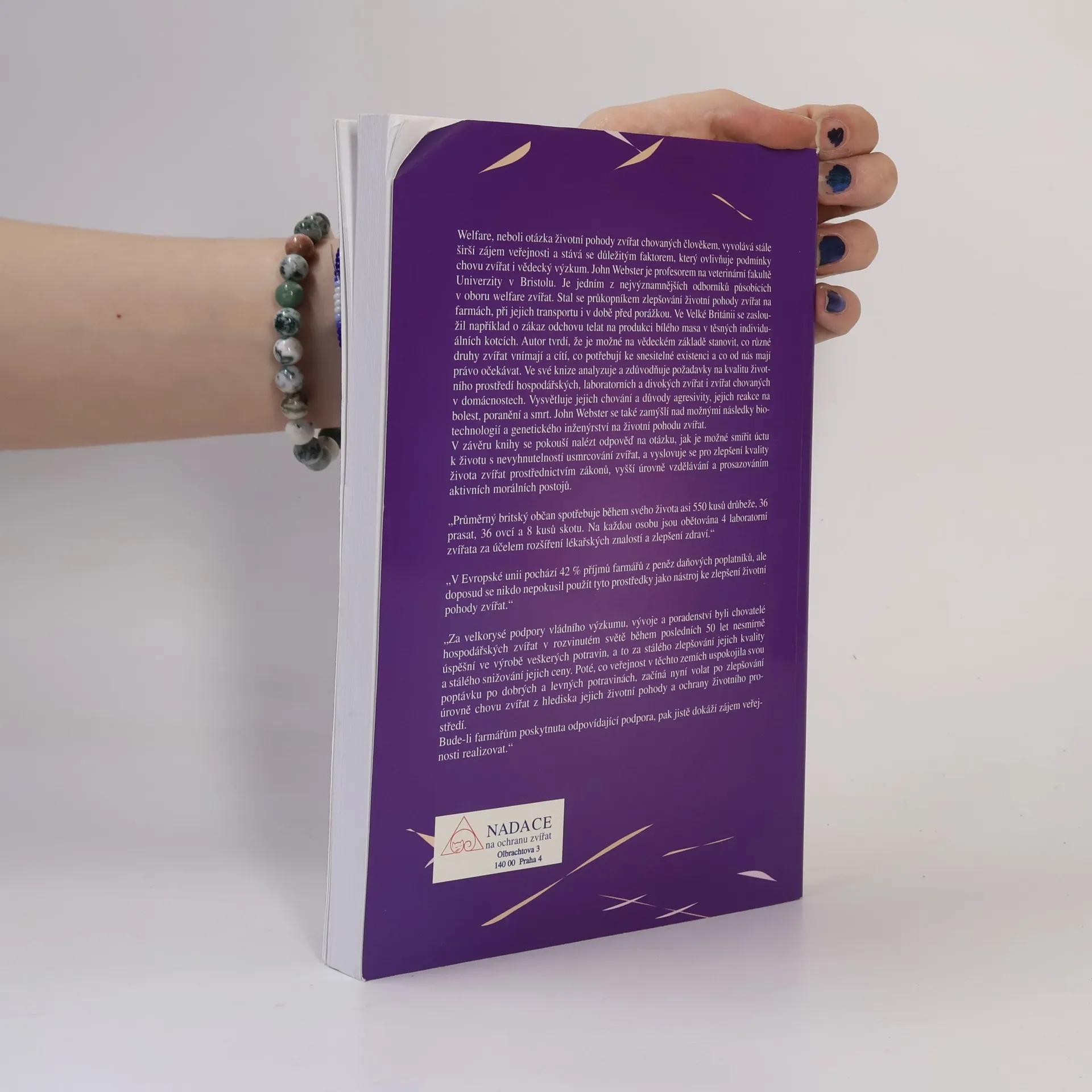 Základní kniha o welfare zvířat zpracovaná předním odborníkem tohoto oboru - profesorem chovu hospodářských zvířat na Fakultě veterinárních věd univerzity v Bristolu. Vydala Nadace na ochranu zvířat.