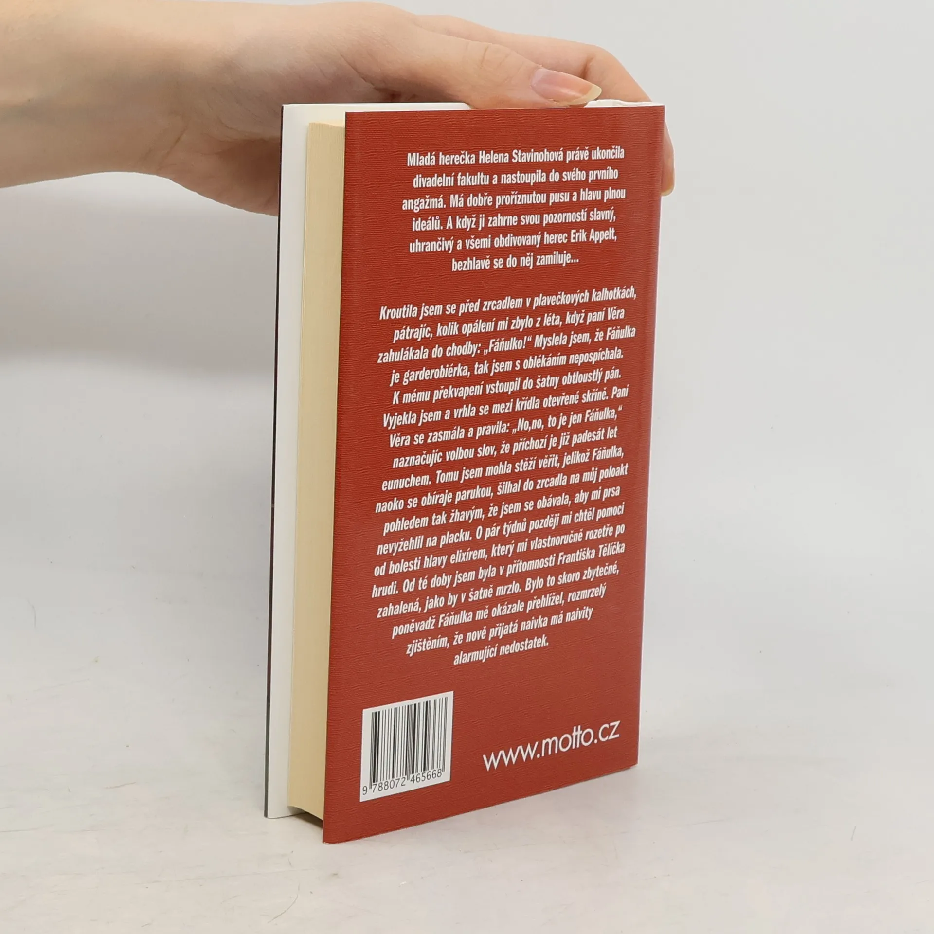 Příběh psaný s humorem a nadhledem vlastním populární herečce a spisovatelce Ivance Deváté. Mladá herečka Helena Stavinohová právě ukončila divadelní fakultu a nastoupila do svého prvního angažmá. Má dobře proříznutou pusu a hlavu plnou ideálů. A když ji zahrne svou pozorností slavný, uhrančivý a všemi obdivovaný herec Erik Appelt, bezhlavě se do něj zamiluje.
