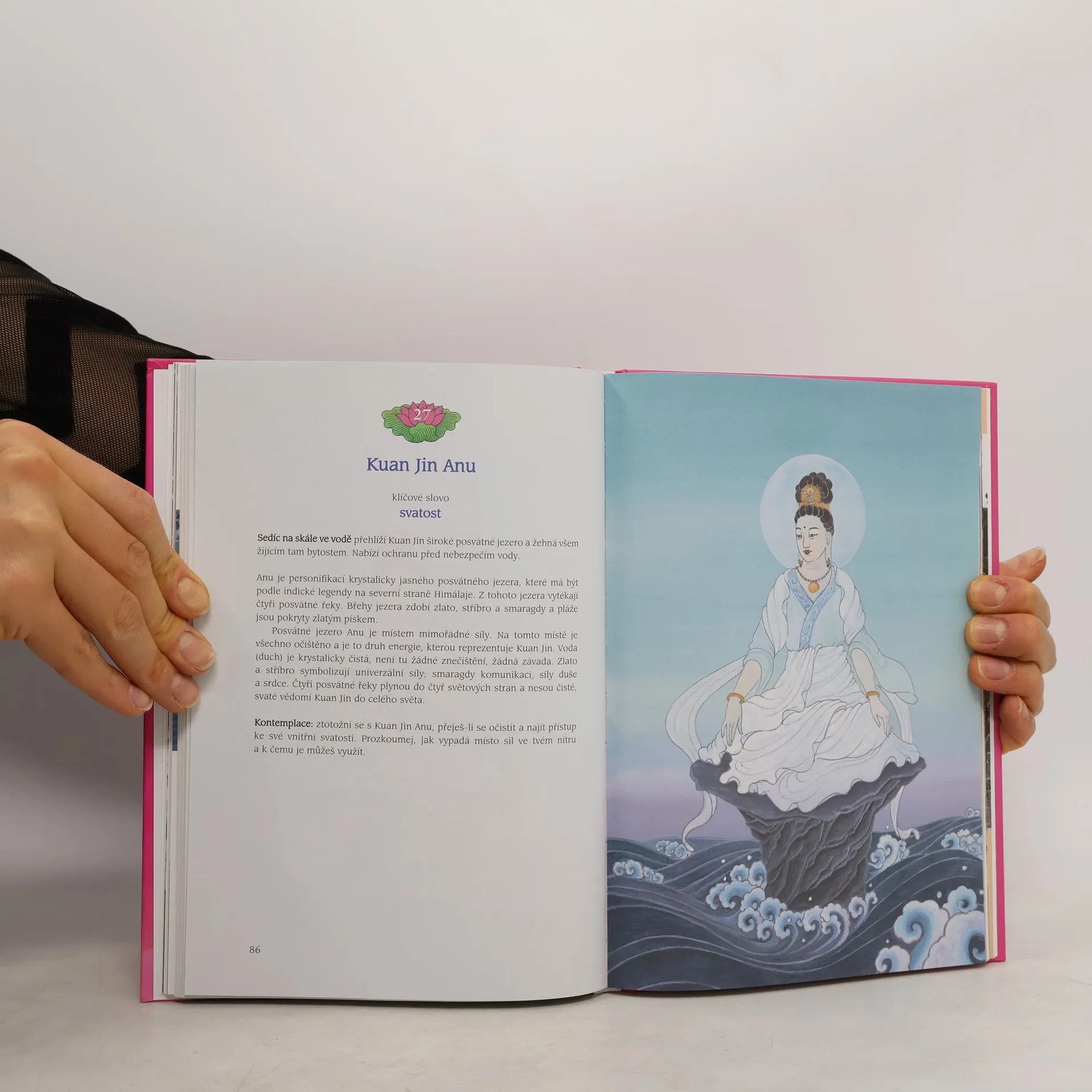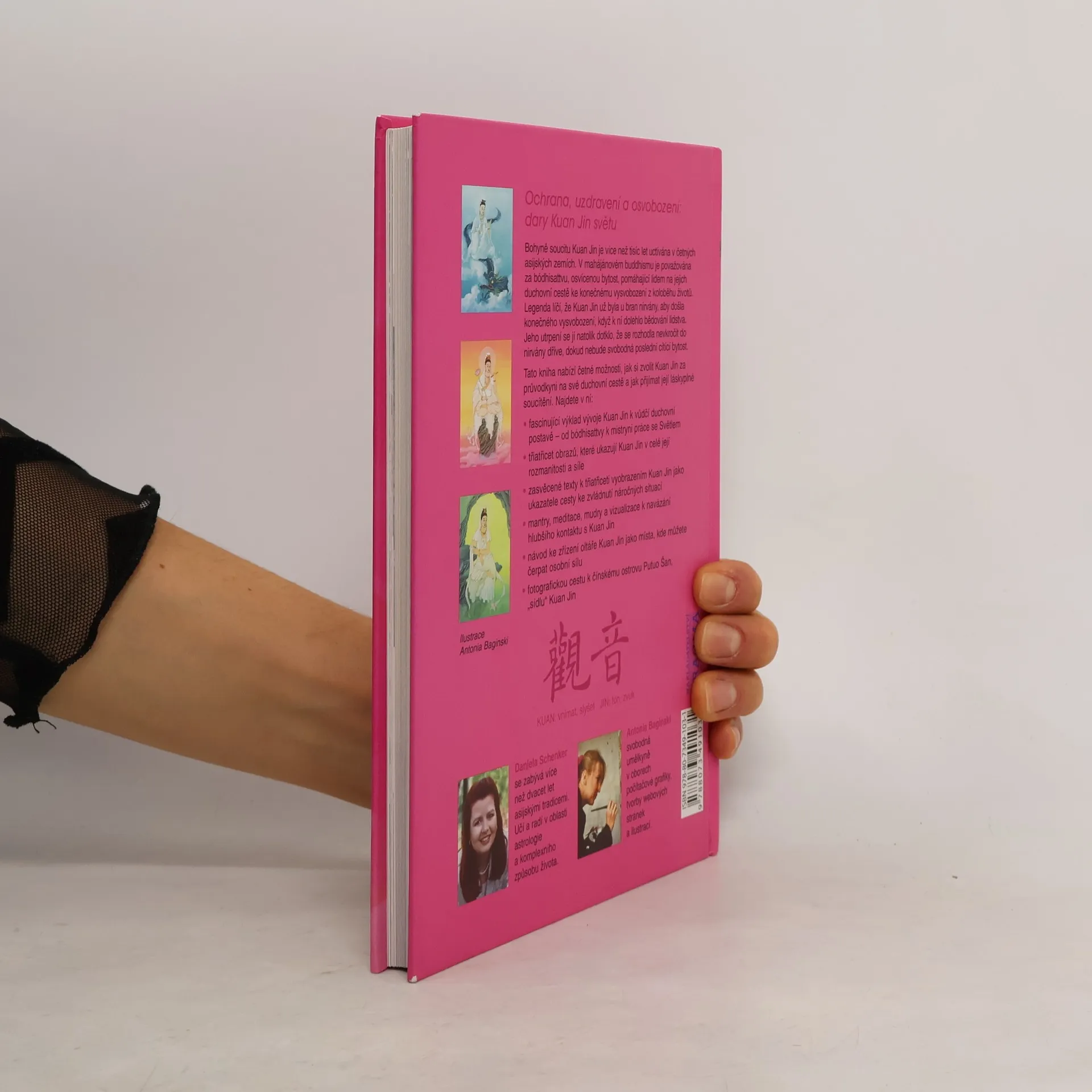 Kuan Jin, bohyně soucitu, je více než tisíc let uctívána v četných asijských zemích. V mahájánovém buddhismu je považována za bódhisattvu, osvícenou bytost, která se plně věnuje osvobození jiných lidí. Kniha nabízí četné možnosti, jak si ji zvolit za průvodkyni a přijímat její láskyplné soucítění. Obsahuje mantry, meditace, mudry a vizualizace k navázání hlubšího kontaktu a 33 barevných akvarelů a fotografické putování po čínském ostrově Putuo Šan, kde má bohyně Kuan Jin své hlavní „sídlo“.